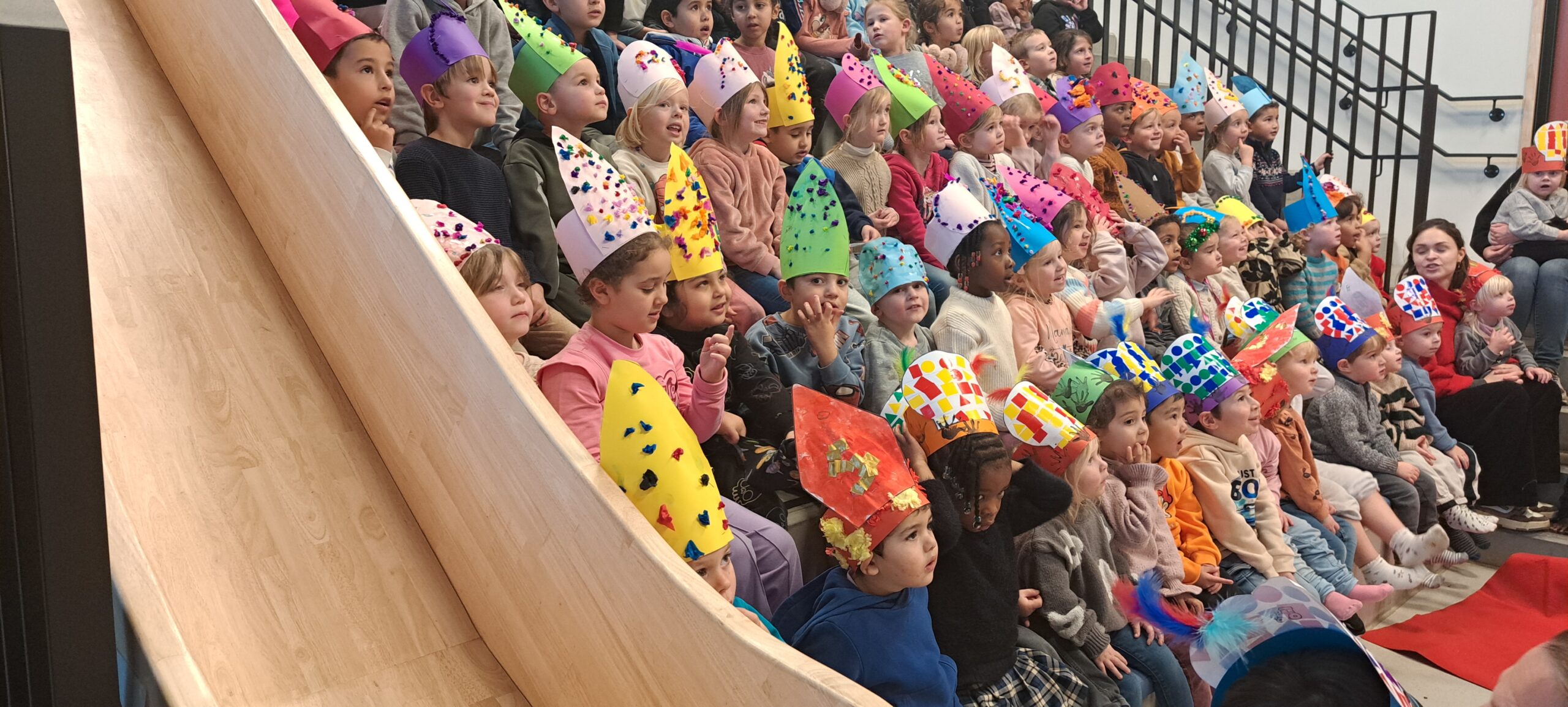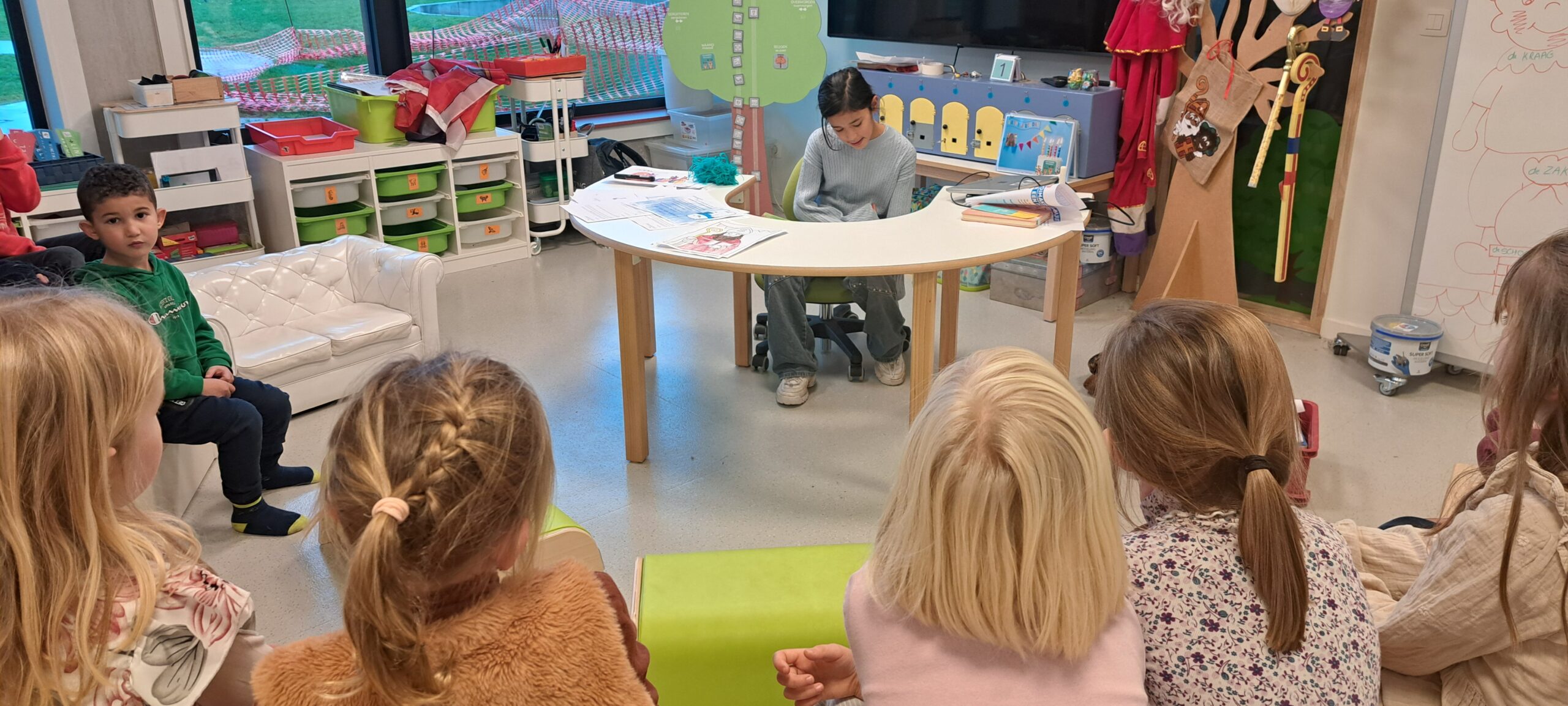 We leerden ook coderen deze week. Met de Bee-bot op het grote scherm werkten we samen om hem tot het kerstcadeautje te brengen. Dat was niet zo eenvoudig. Gelukkig konden we samen telkens tot de juiste weg komen. De kleuters vonden het zo leuk, dan niemand iets anders wou doen… Dus we zullen deze activiteit ook op onze Chromebooks in de klas zetten, zodat ze zelf ook nog kunnen oefenen.