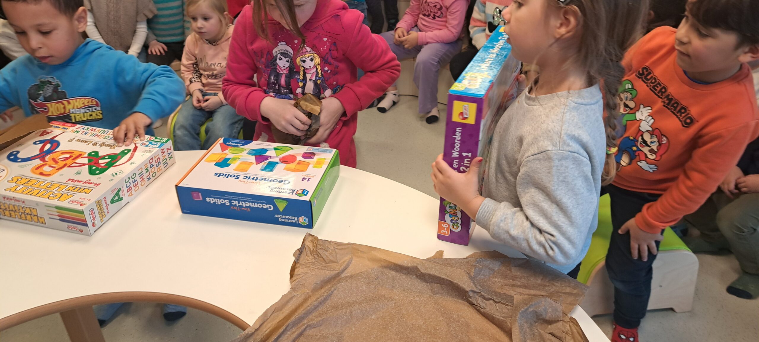 Maandag begonnen we natuurlijk met het vertellen over ons sinterklaasweekend, want die heeft weer heel veel leuke dingen uitgedeeld aan de kapoenen van de klas. Iedereen was superblij en trots om over de sintspullen te vertellen.