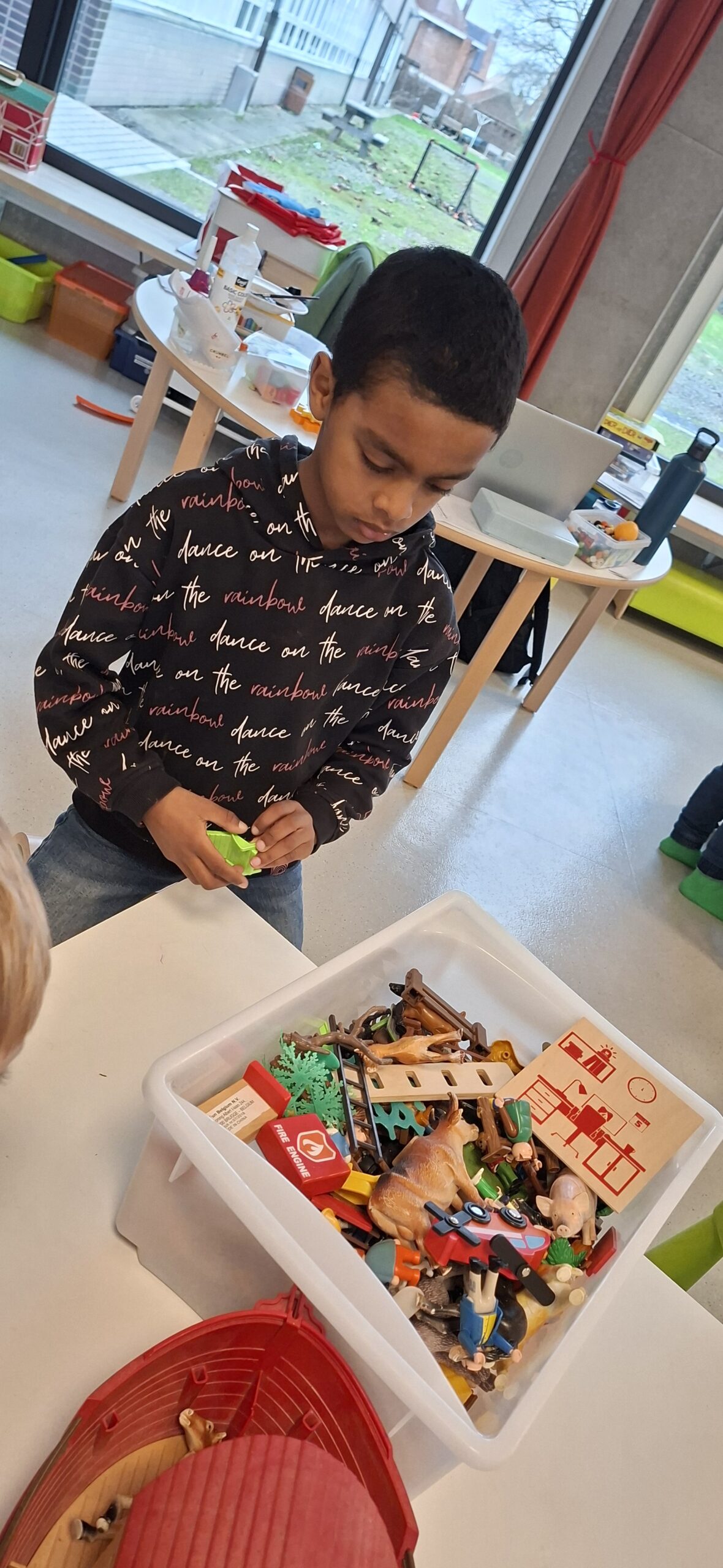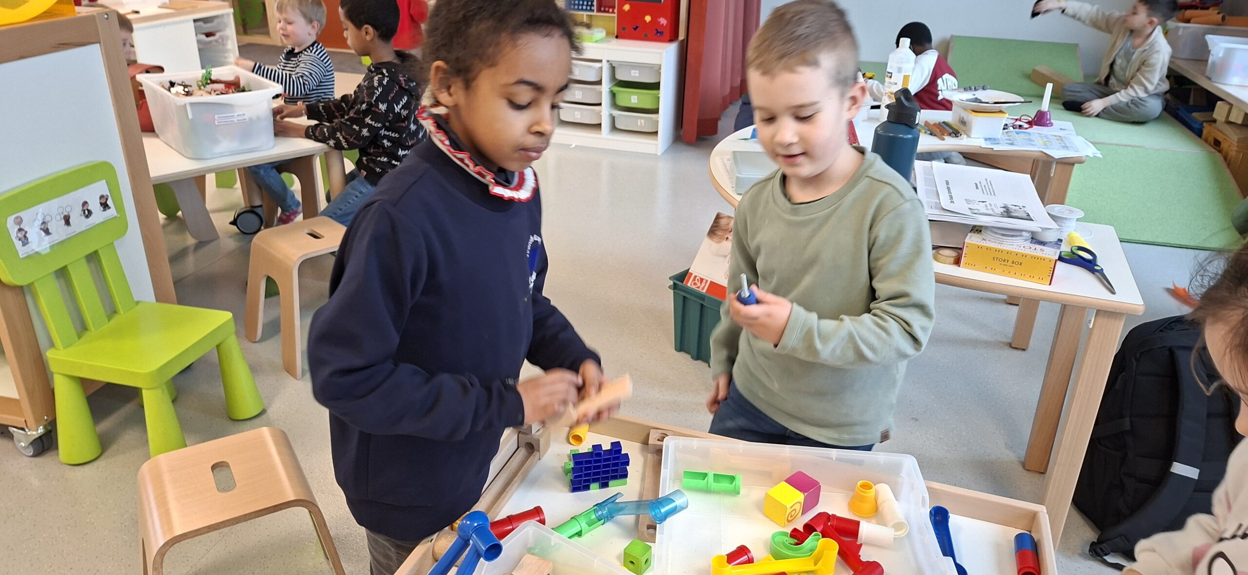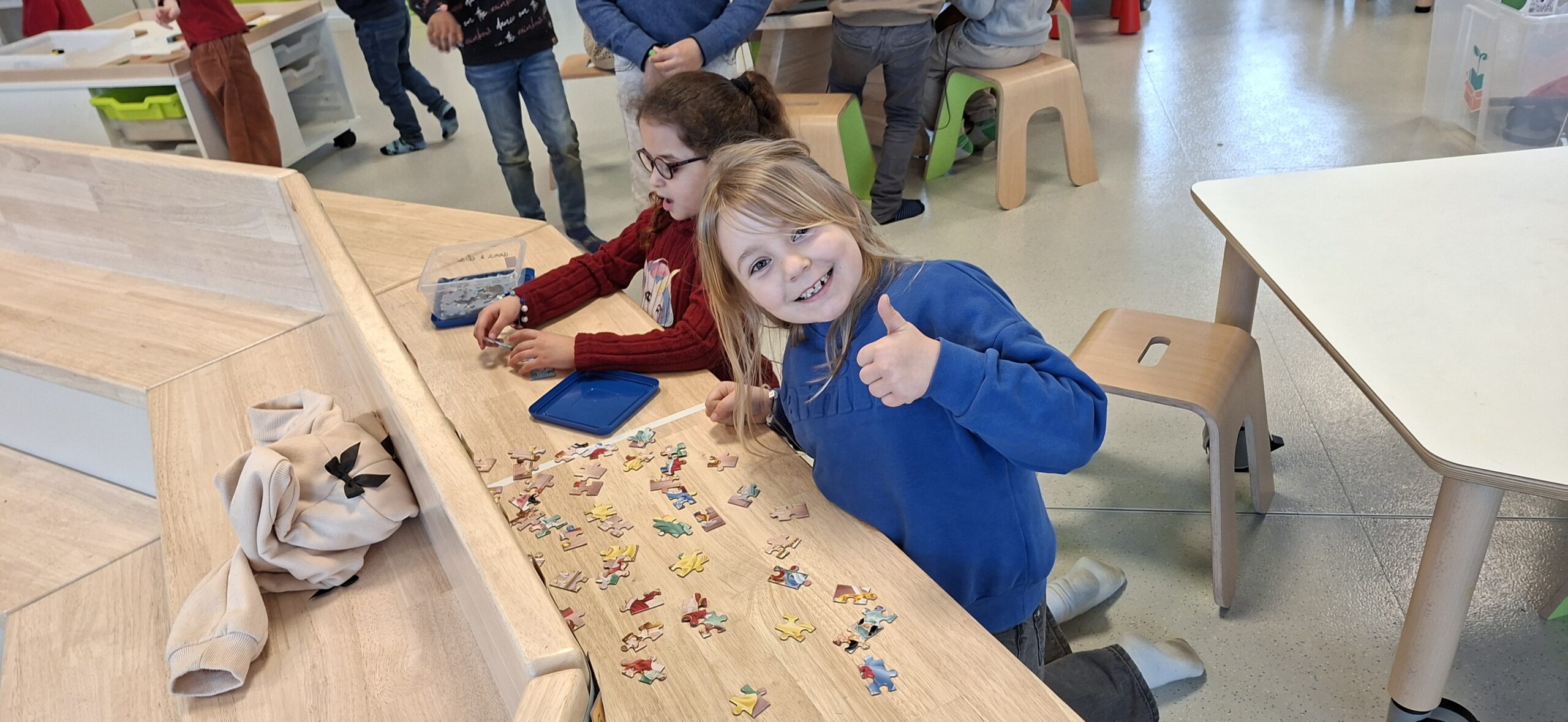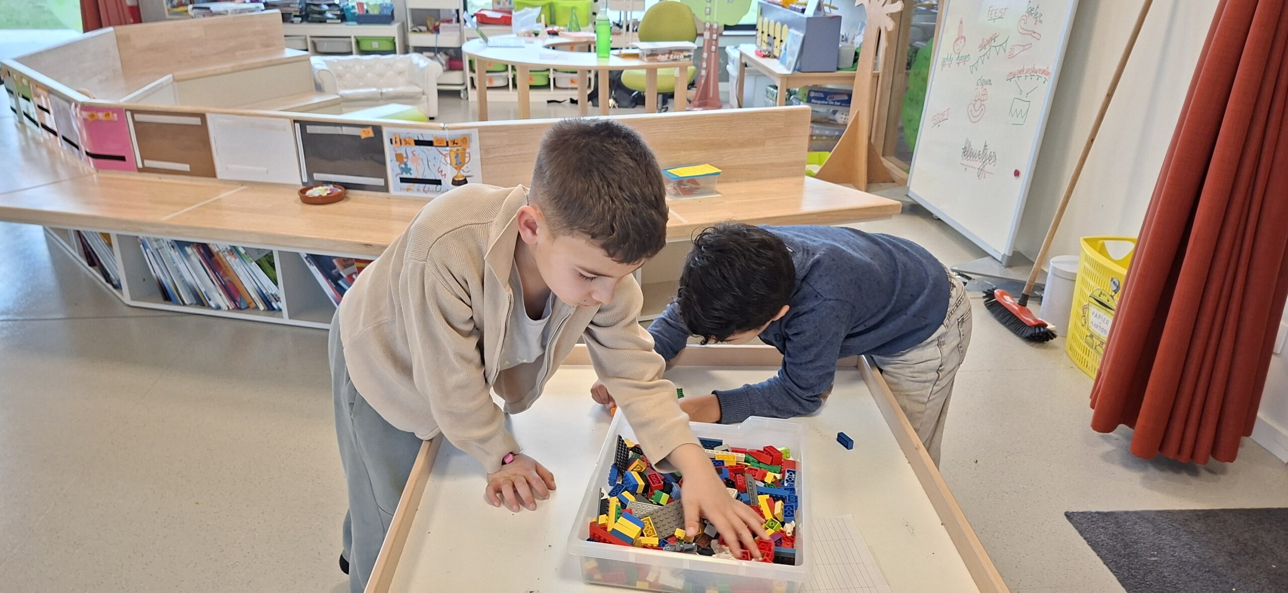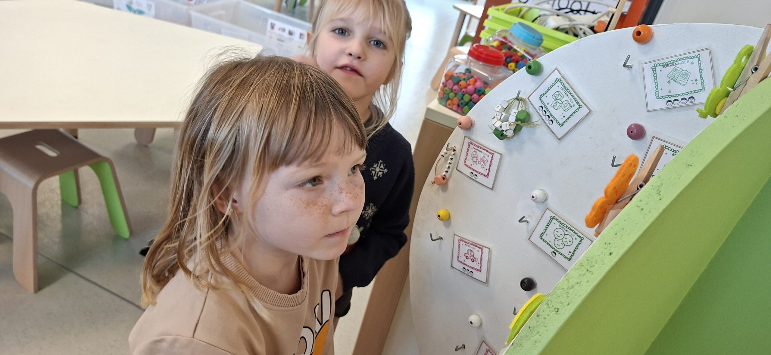 Donderdagnamiddag en vrijdagvoormiddag werkten we met een doorschuifsysteem. De kleuters werden in kleine groepjes verdeeld en konden proeven van verschillende gezelschapsspelletjes. Het was een gezellige drukte.