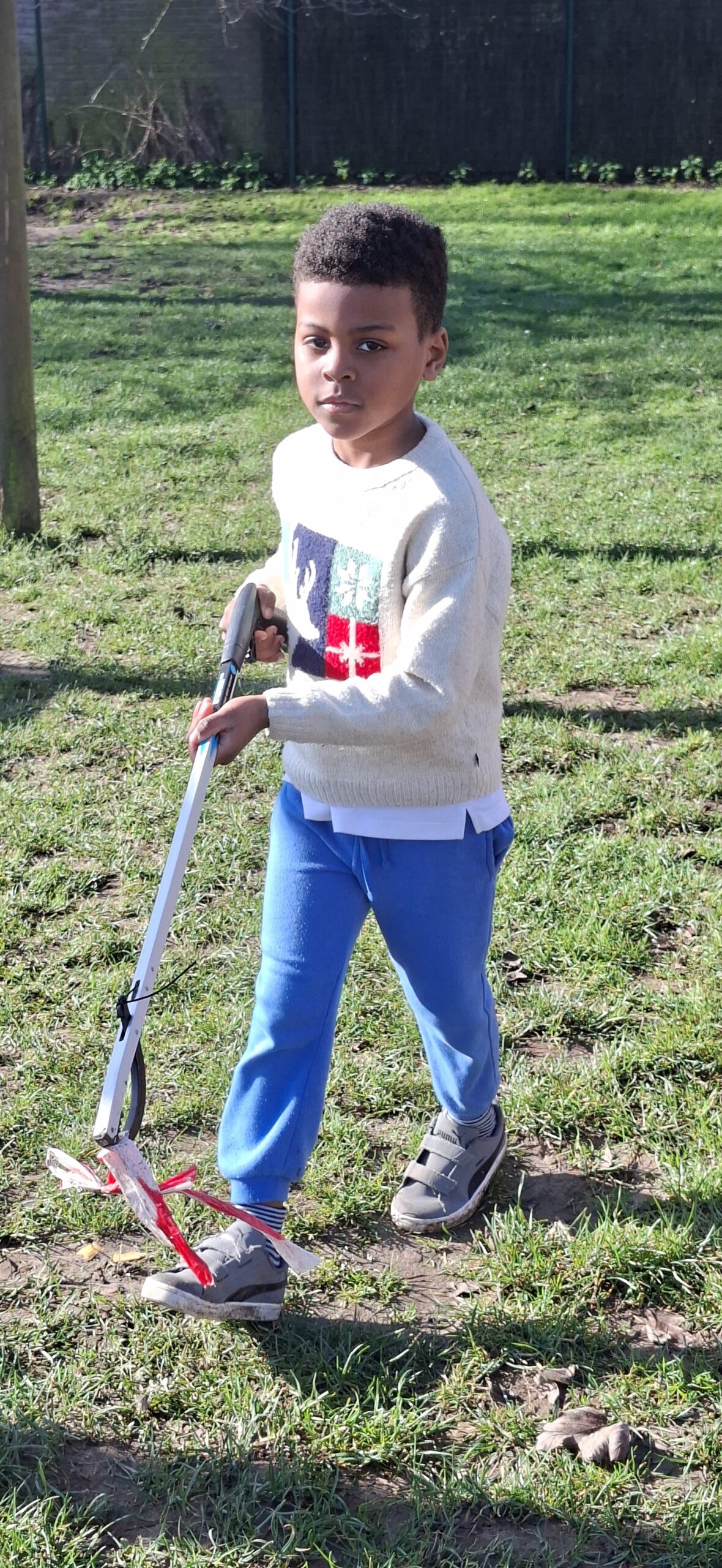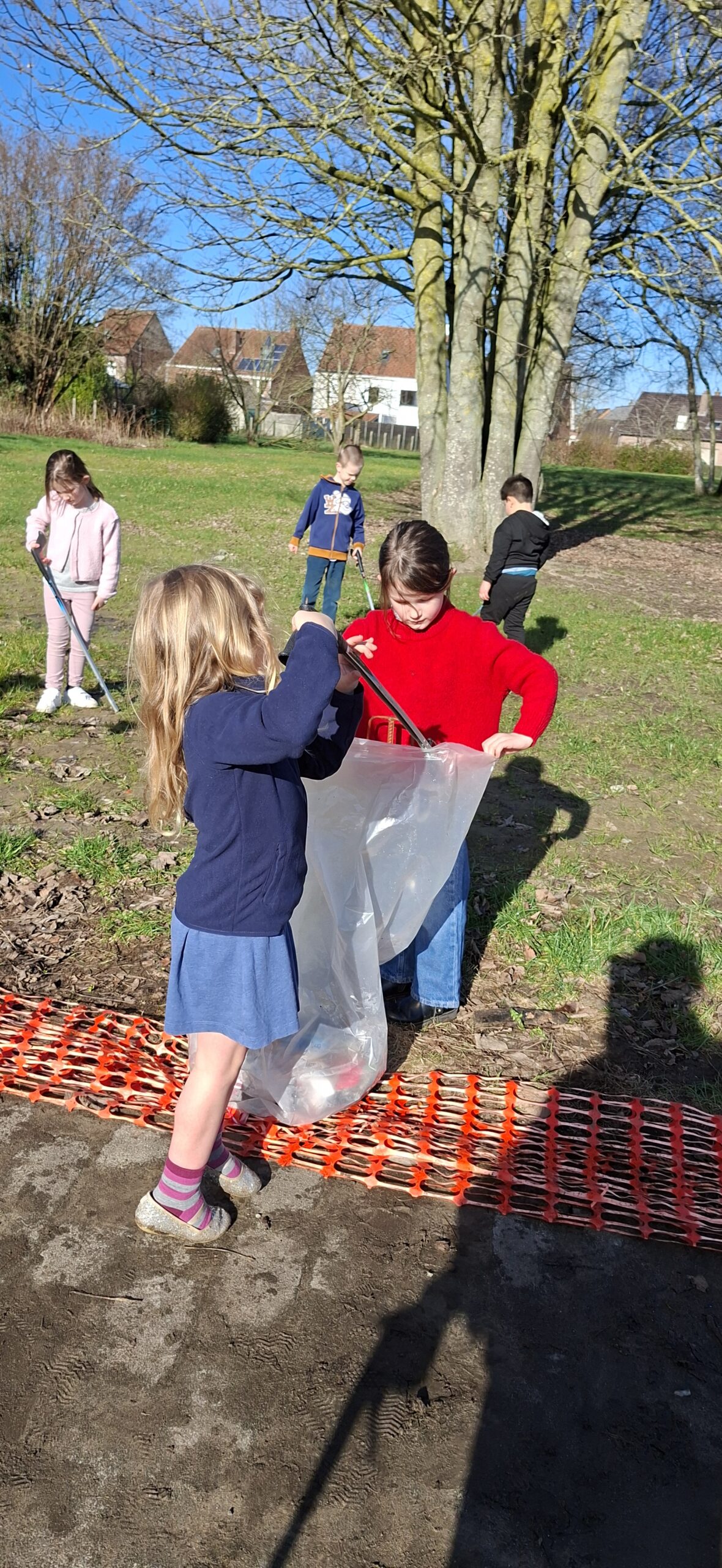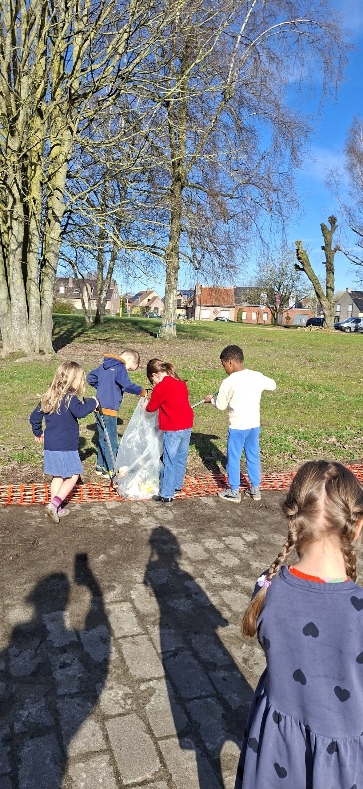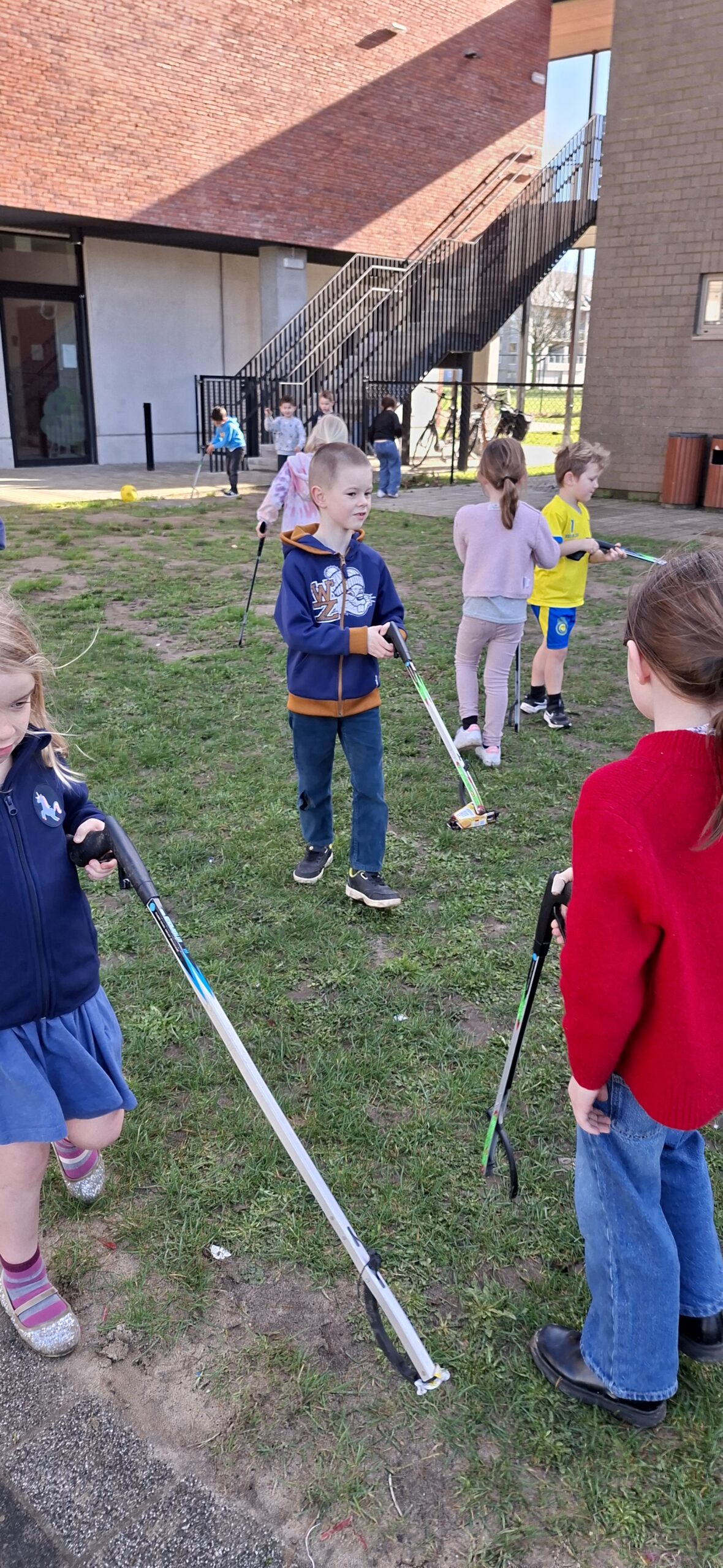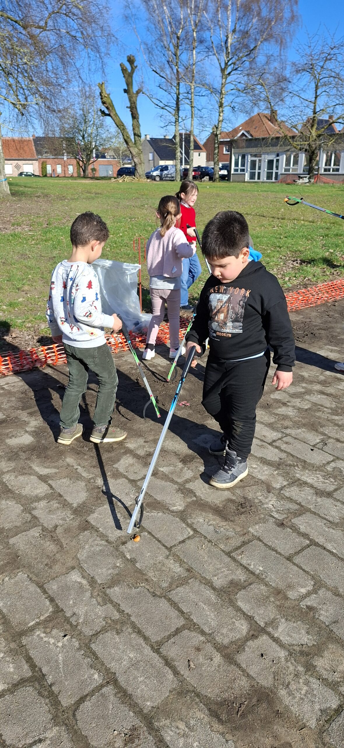 We hebben ook afval opgeruimd op de speelplaats van het lager onderwijs. We kregen allemaal een afvalgrijper en dat vonden we heel erg interessant om te gebruiken, want het meeste afval vonden we wel vies.