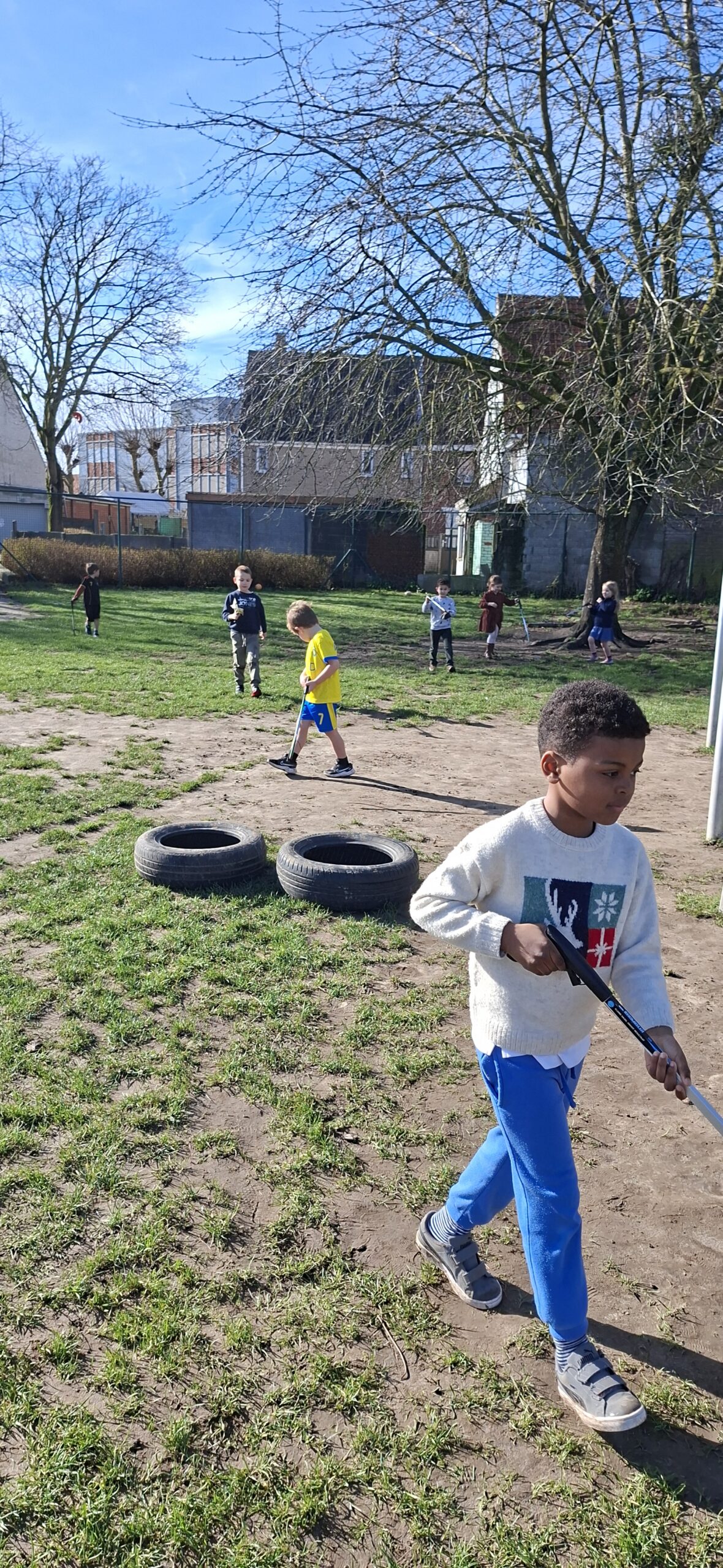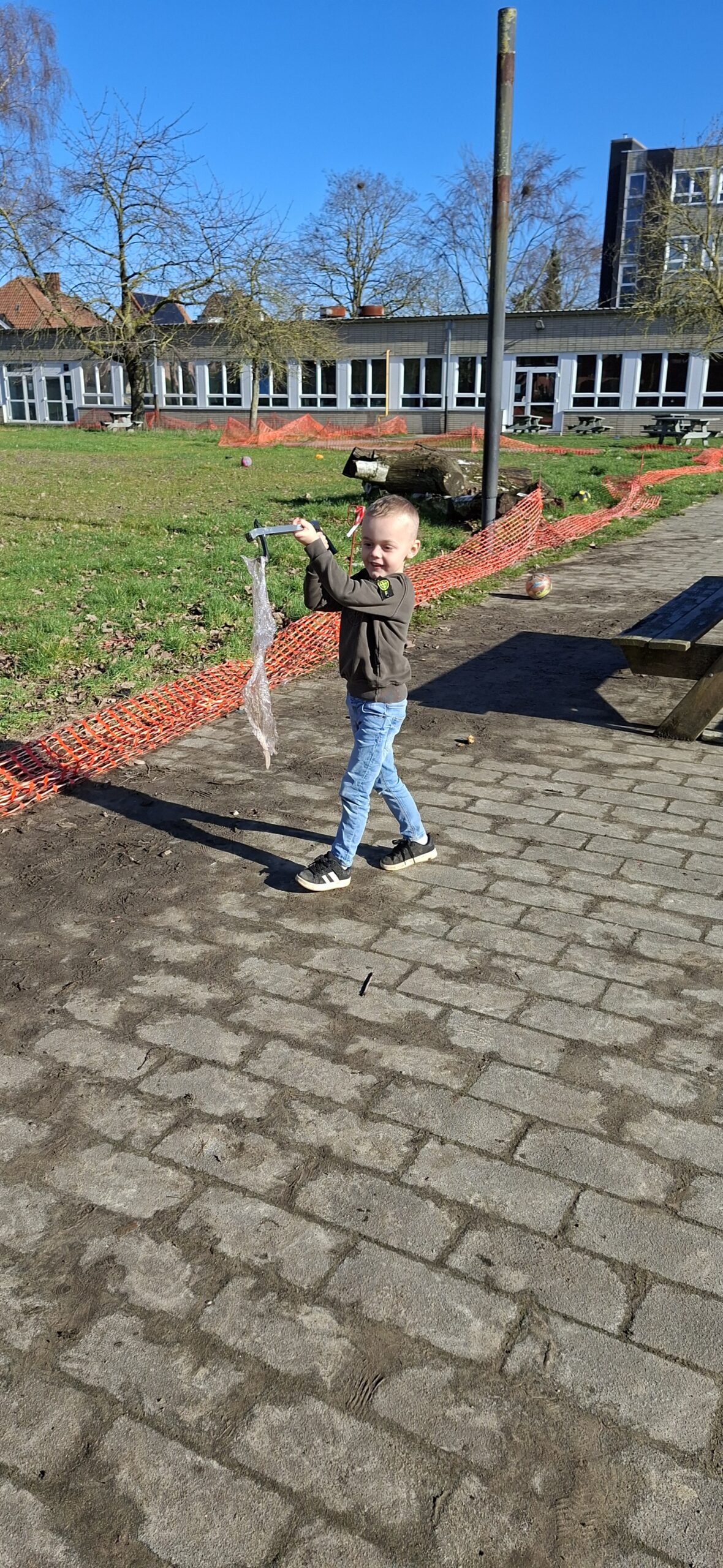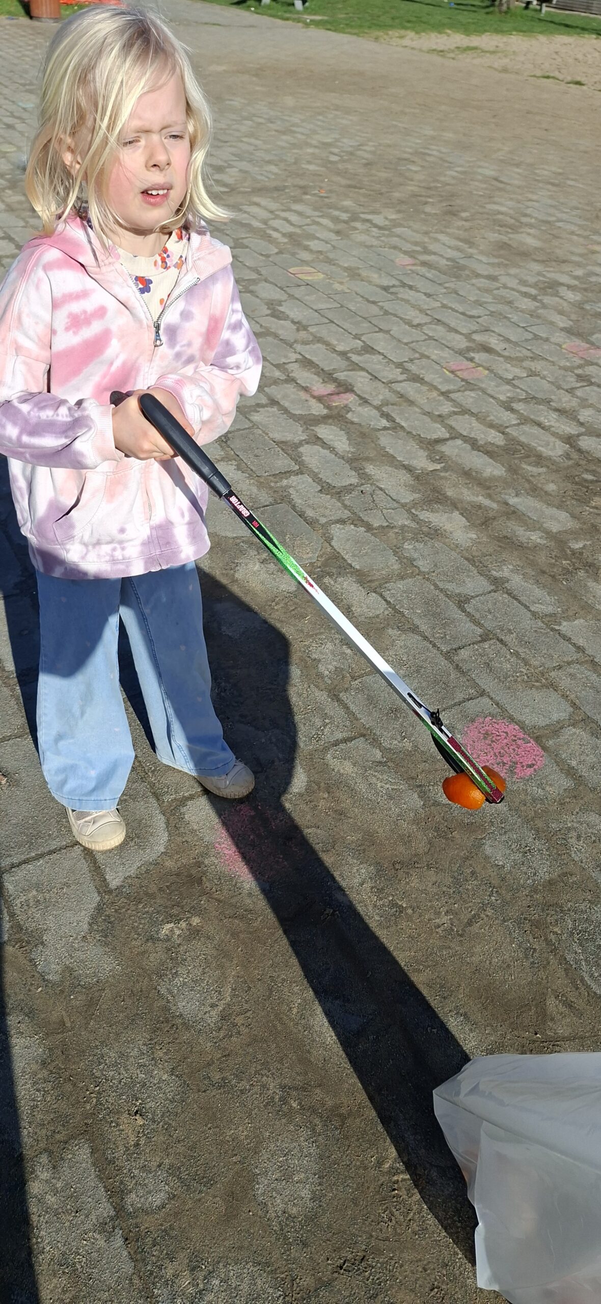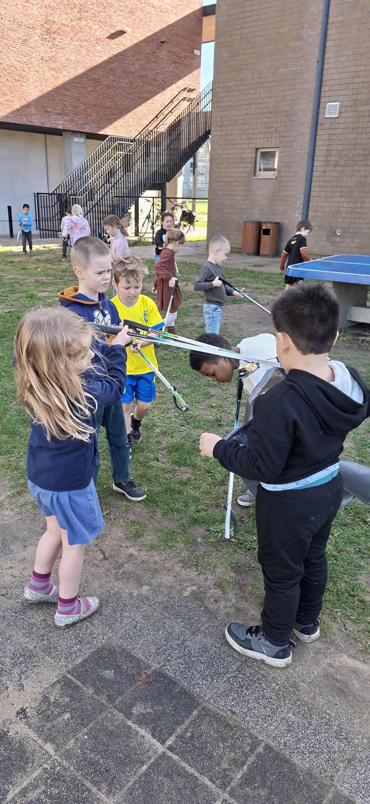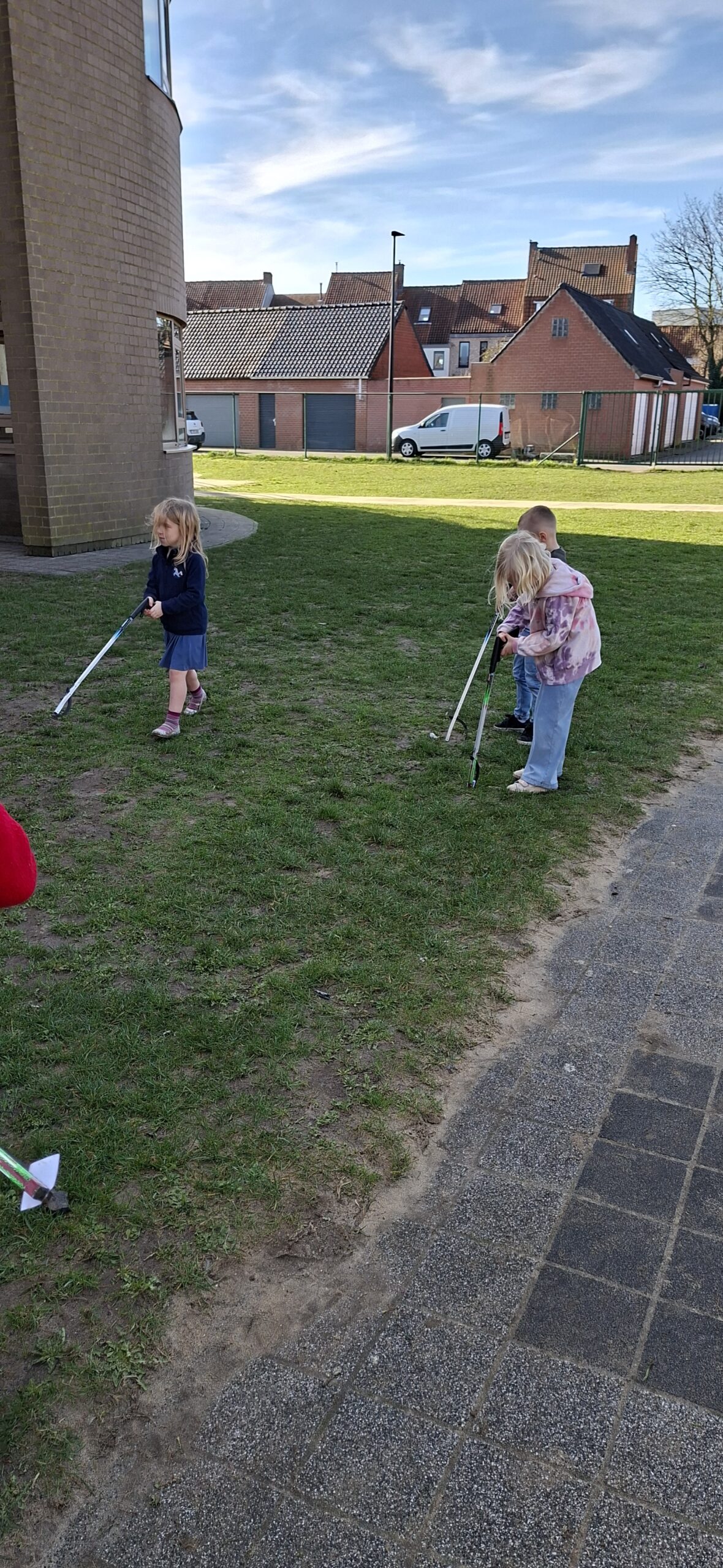 We hebben ook afval opgeruimd op de speelplaats van het lager onderwijs. We kregen allemaal een afvalgrijper en dat vonden we heel erg interessant om te gebruiken, want het meeste afval vonden we wel vies.