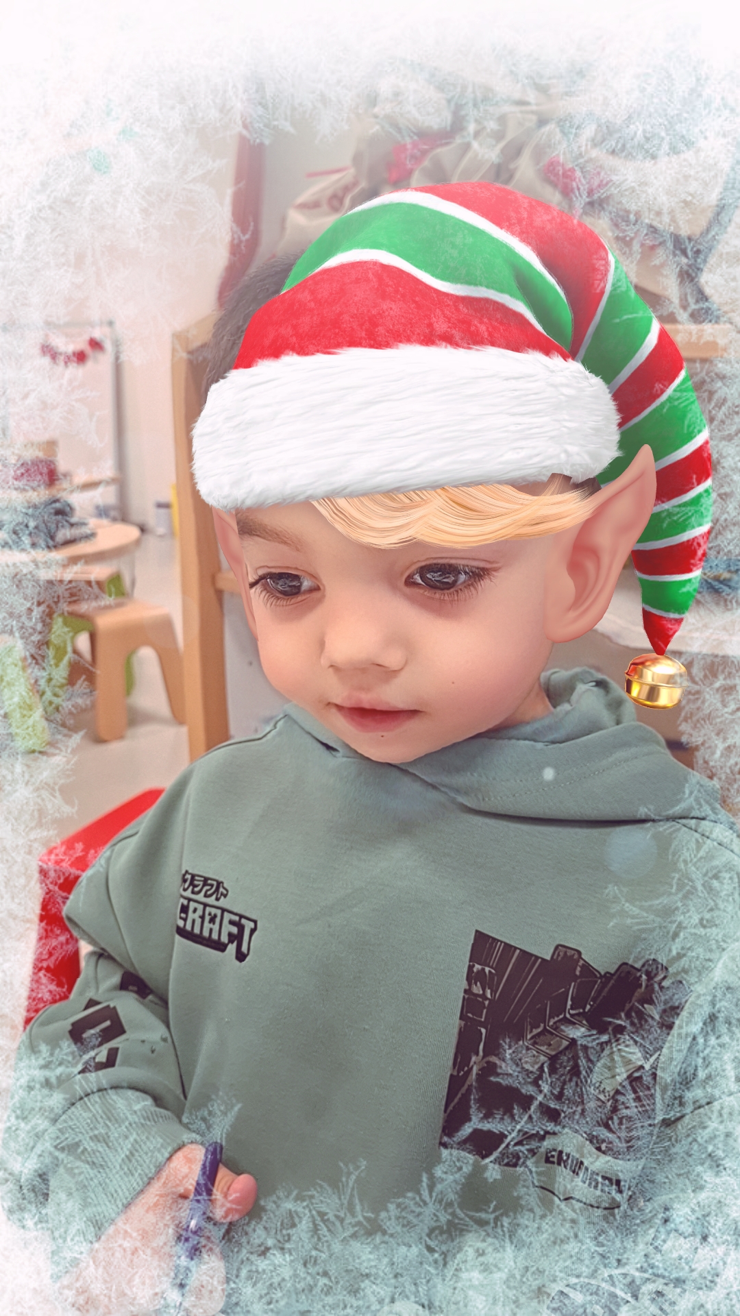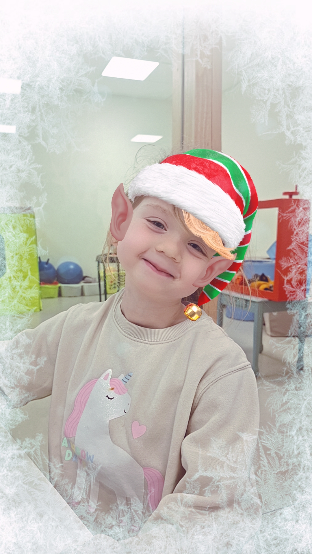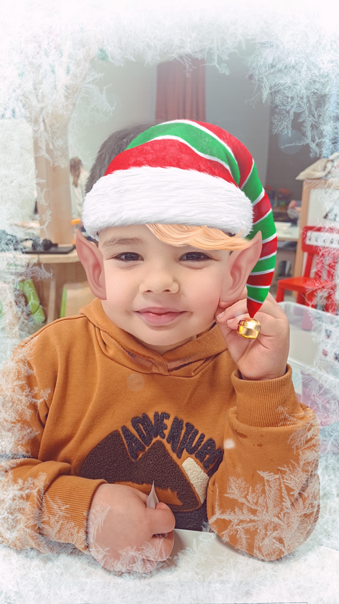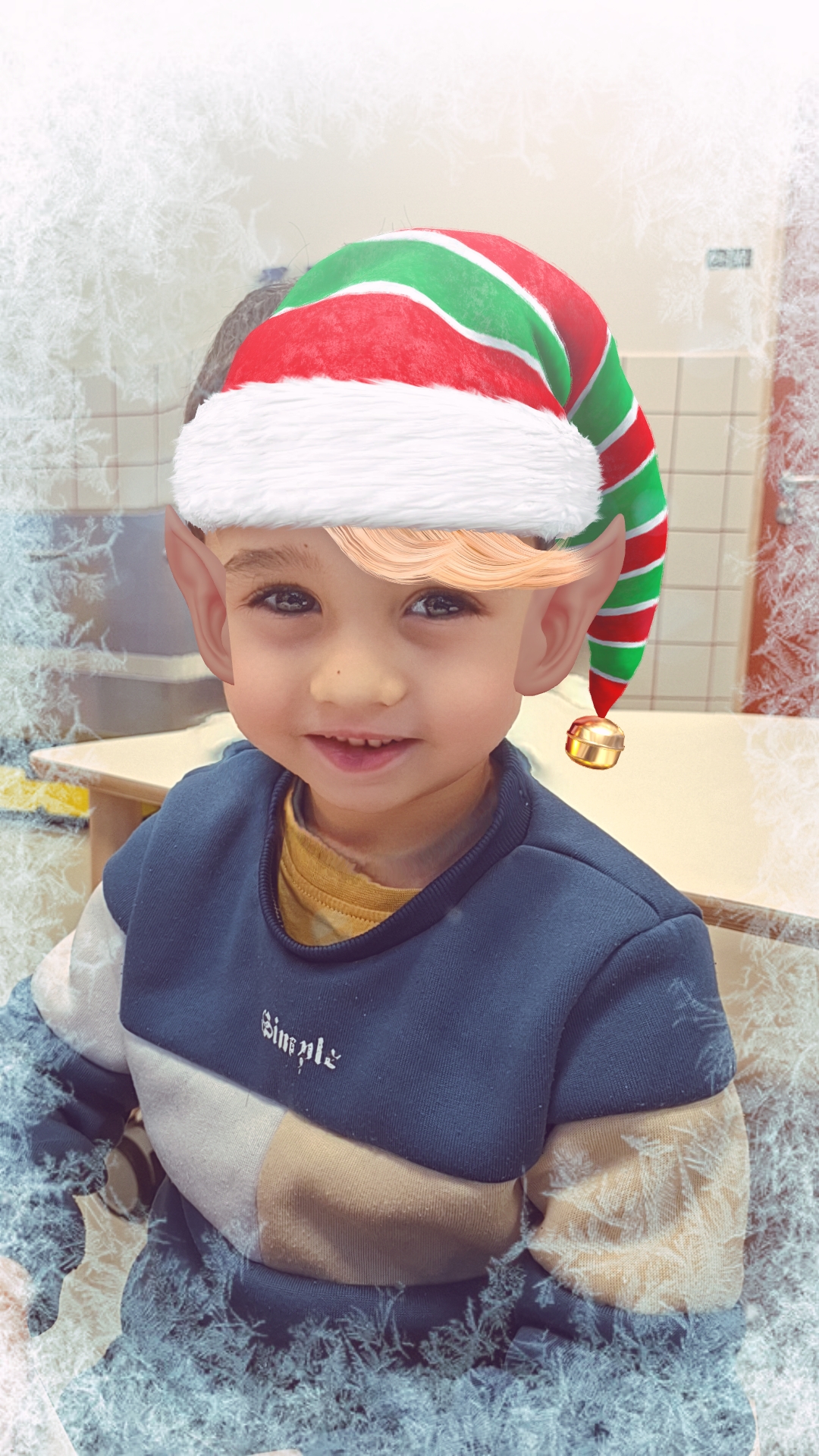 Voor het einde van het jaar 2025, hebben we allemaal een foto genomen… maar de gsm deed een beetje gek, want we zijn allemaal in kerstelfjes veranderd. Wie o wie herkent zijn/haar kapoen?