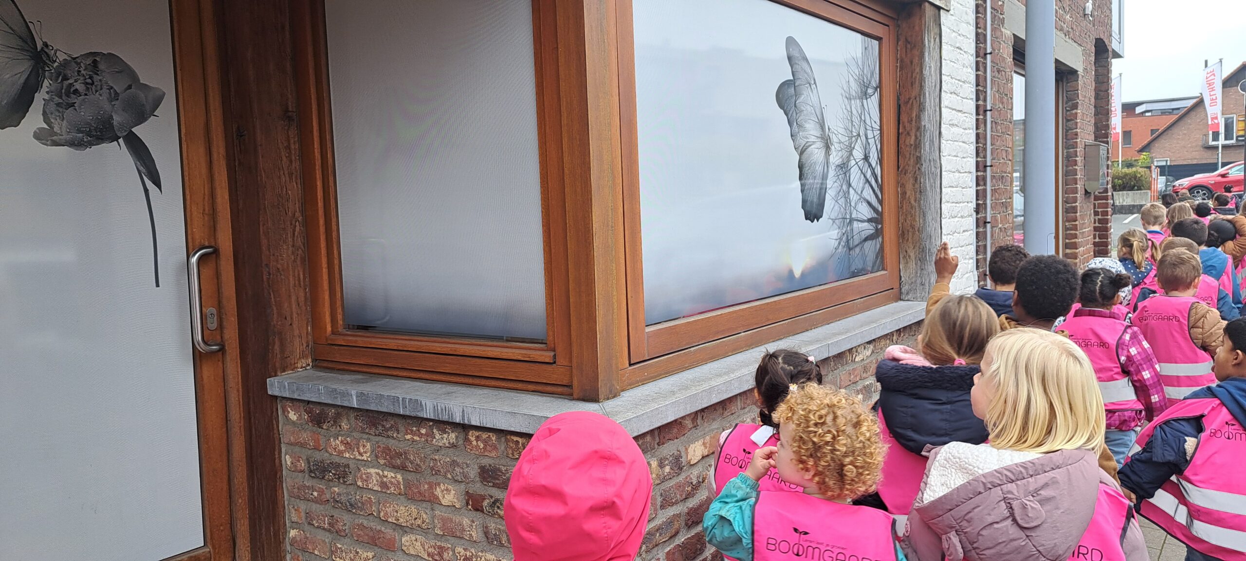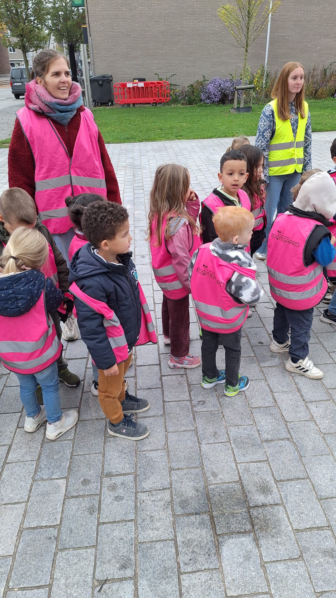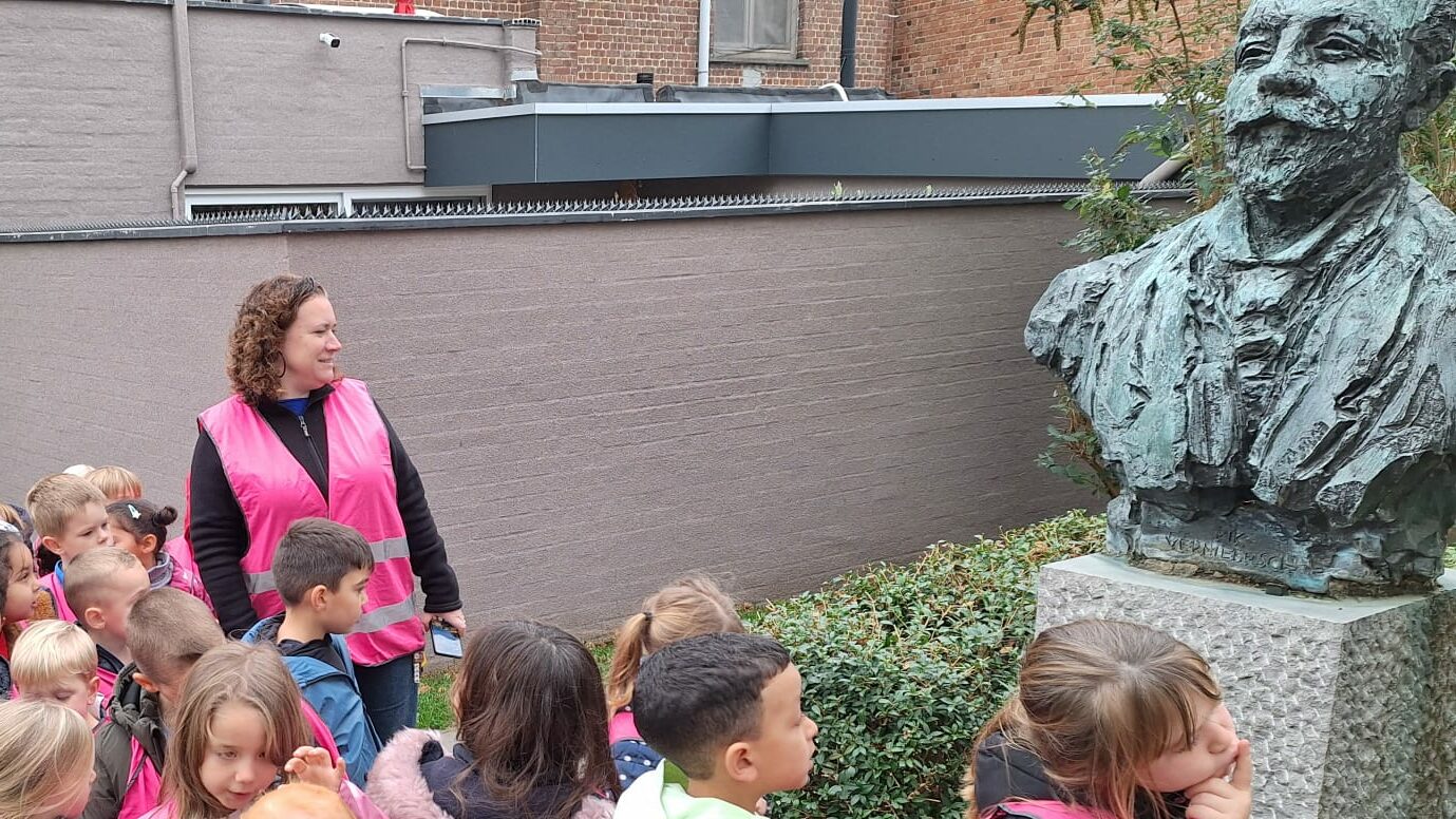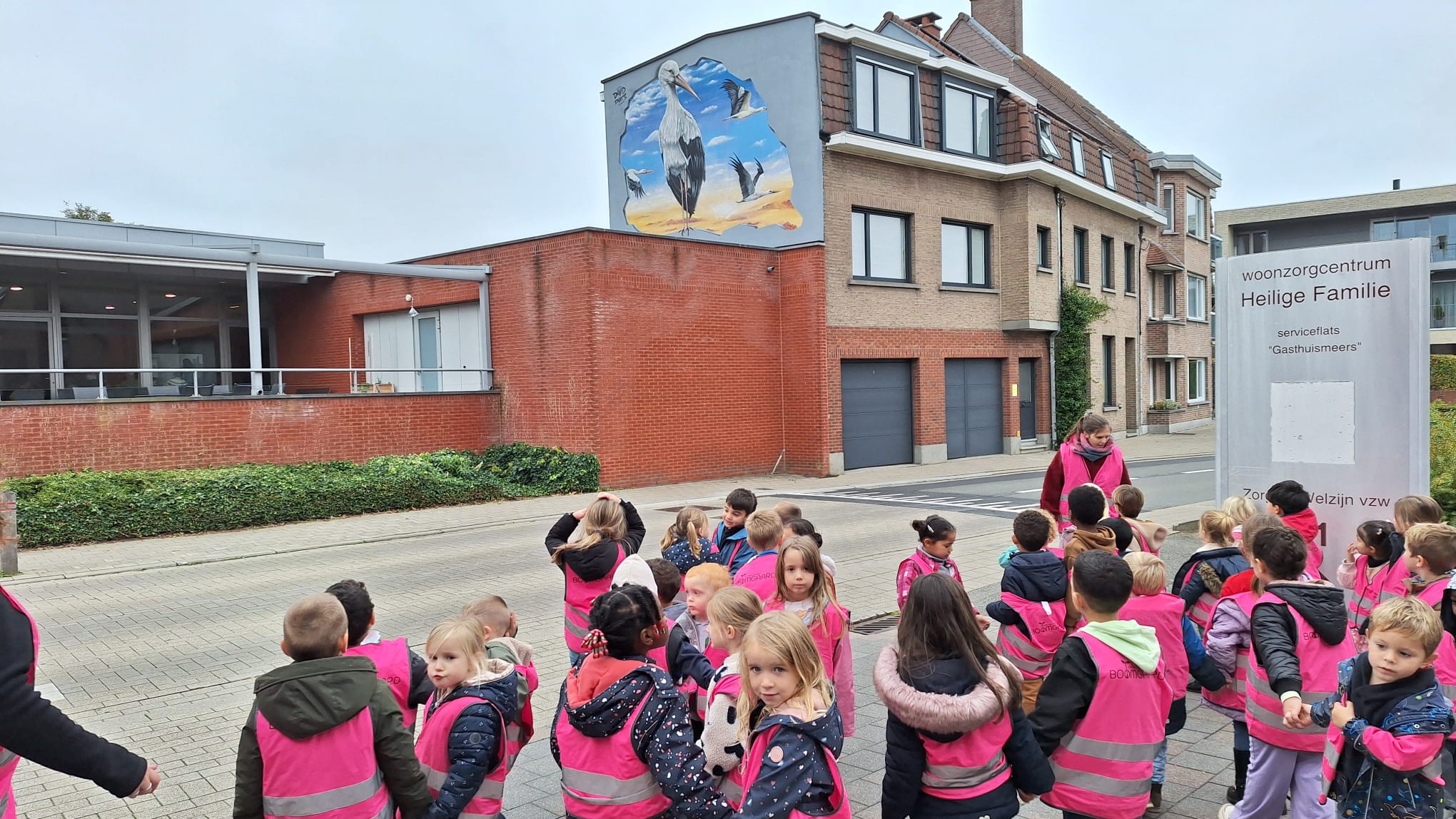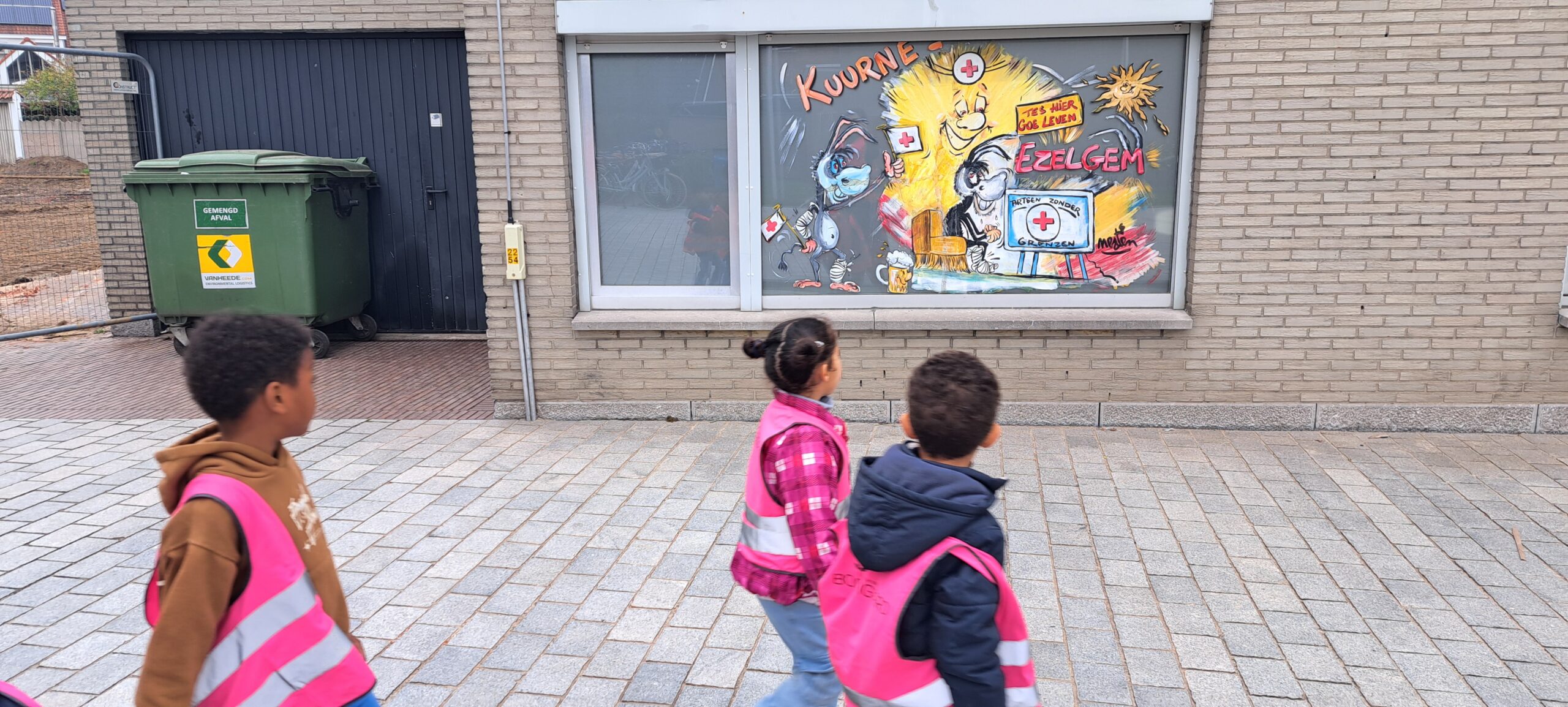 Op dinsdagvoormiddag gingen we op stap in onze gemeente. Want ook langs de straat zie je kunst! We hebben schilderwerken gezien op muren, op hout, op vensters. We konden ook enkele beelden waarnemen en die waren gemaakt uit verschillende materialen: hout of metaal. We leerden tijdens deze wandeling ook het verschil tussen kunstwerken en grote reclameborden die aan de muren hangen.