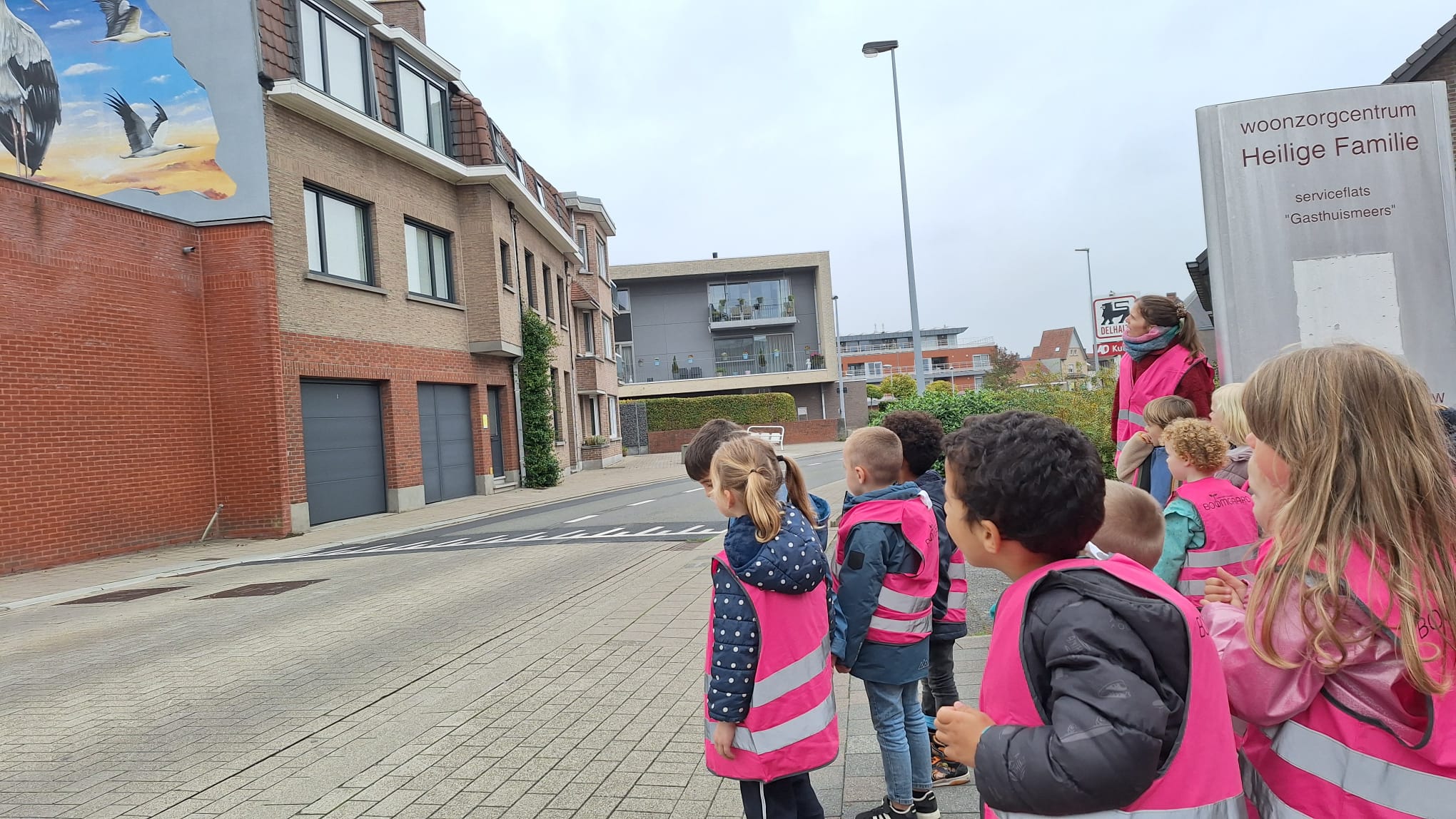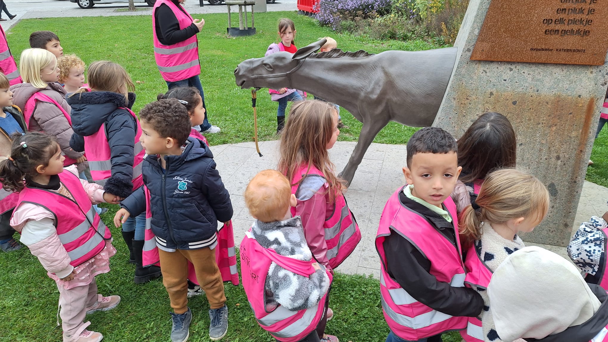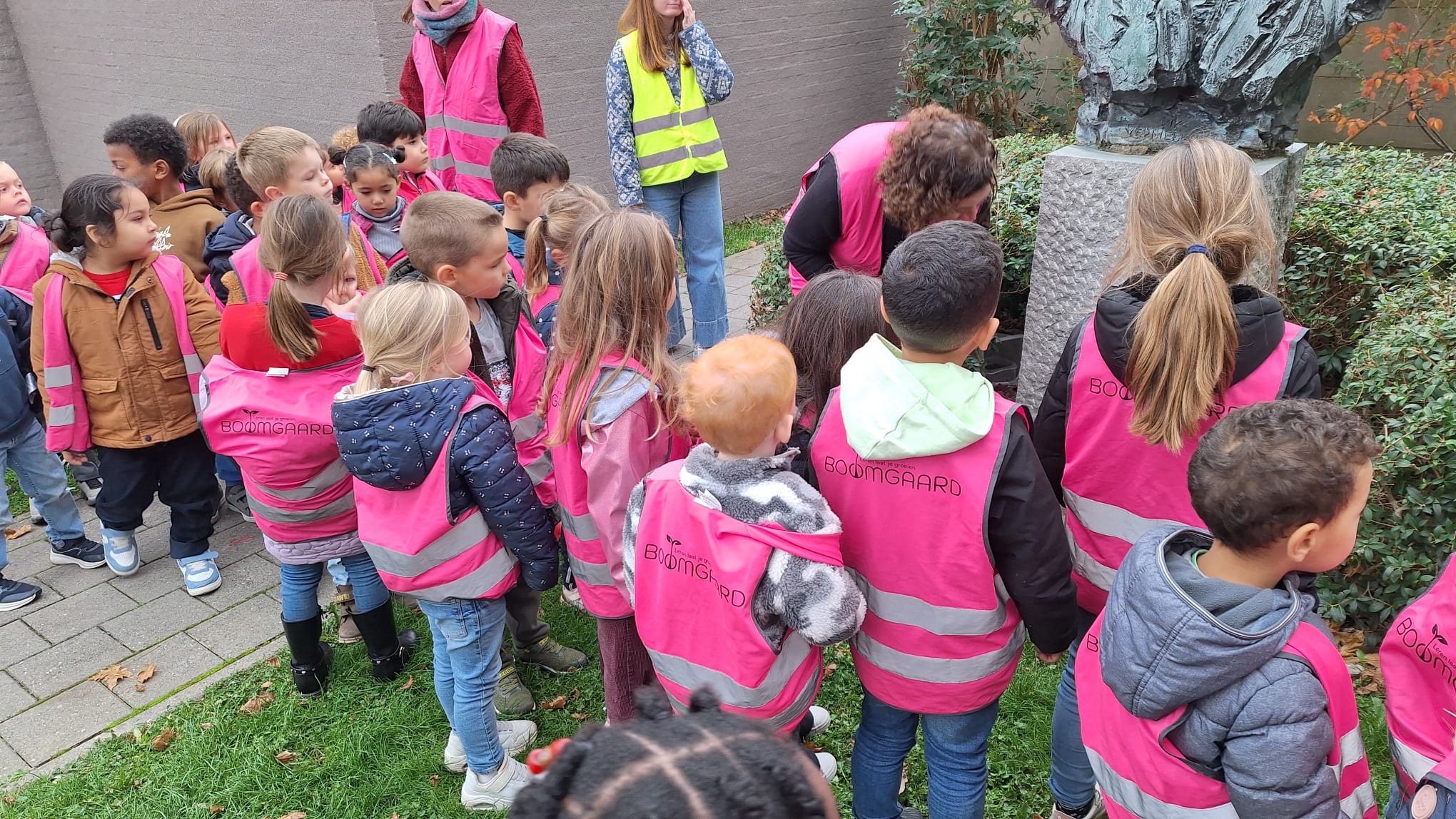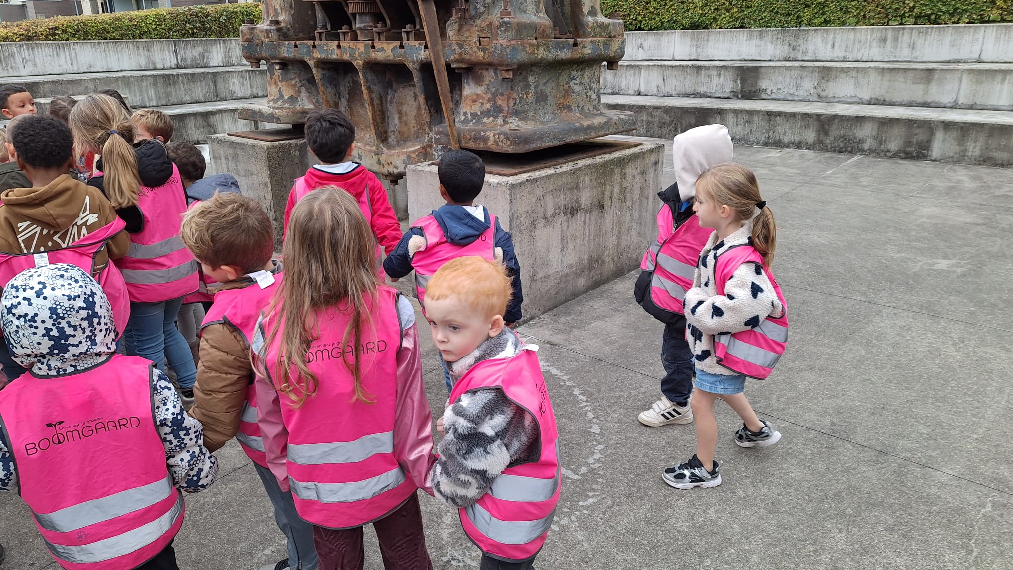 Op dinsdagvoormiddag gingen we op stap in onze gemeente. Want ook langs de straat zie je kunst! We hebben schilderwerken gezien op muren, op hout, op vensters. We konden ook enkele beelden waarnemen en die waren gemaakt uit verschillende materialen: hout of metaal. We leerden tijdens deze wandeling ook het verschil tussen kunstwerken en grote reclameborden die aan de muren hangen.
