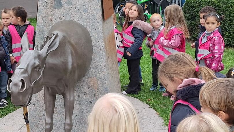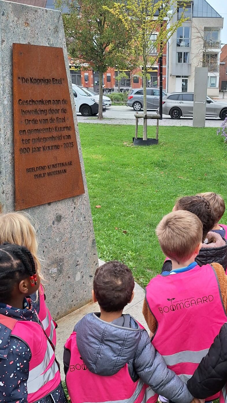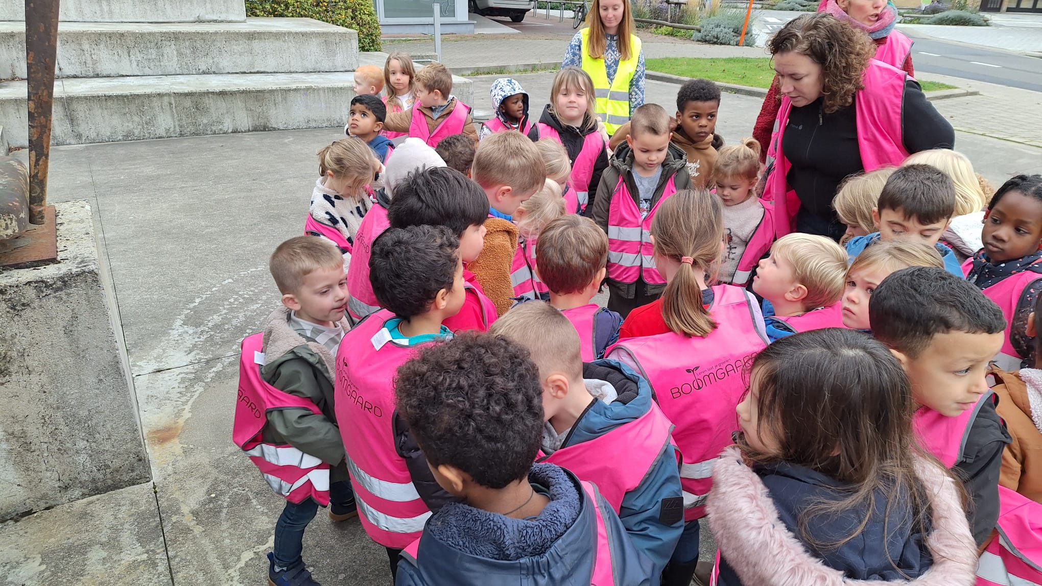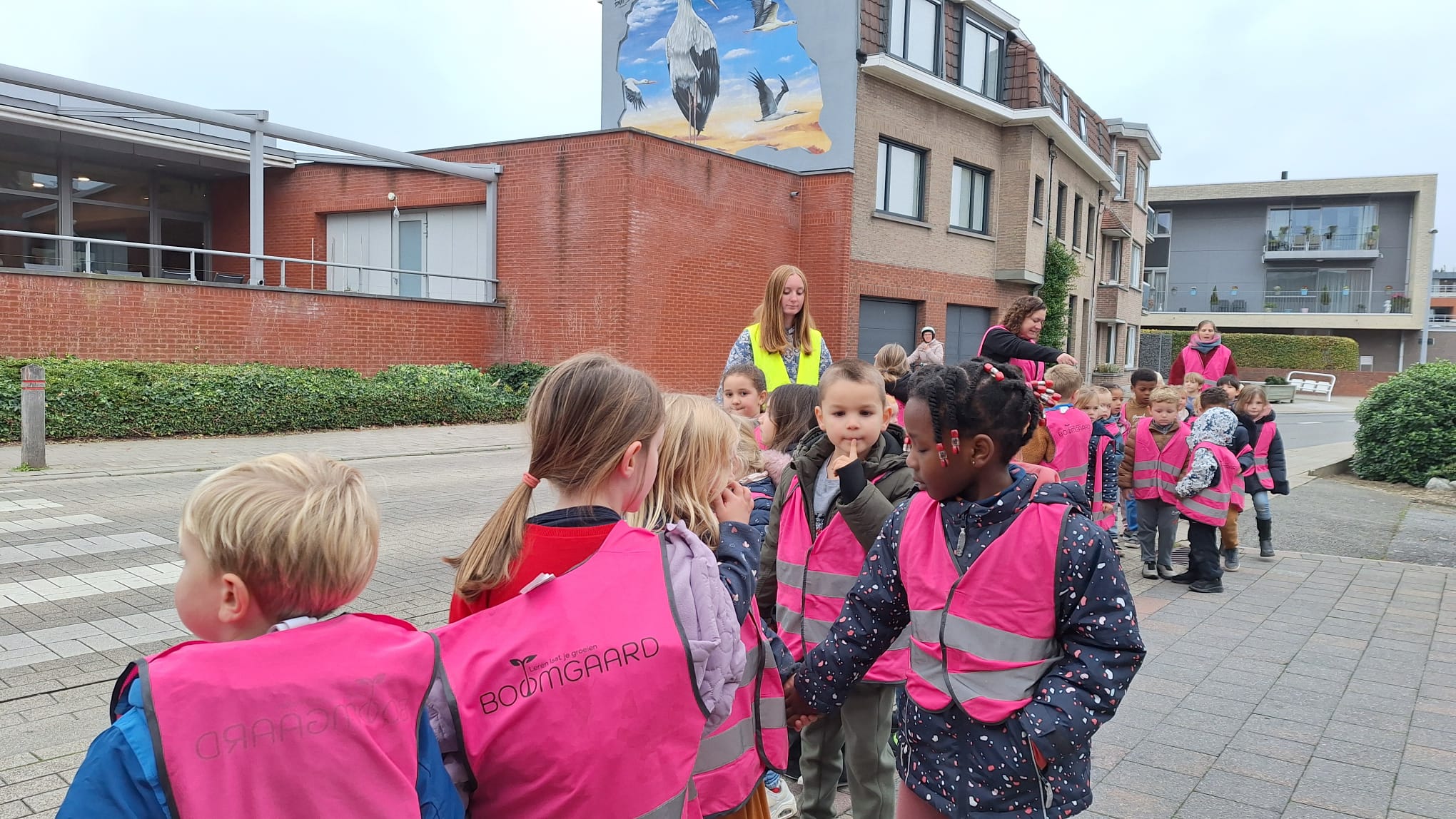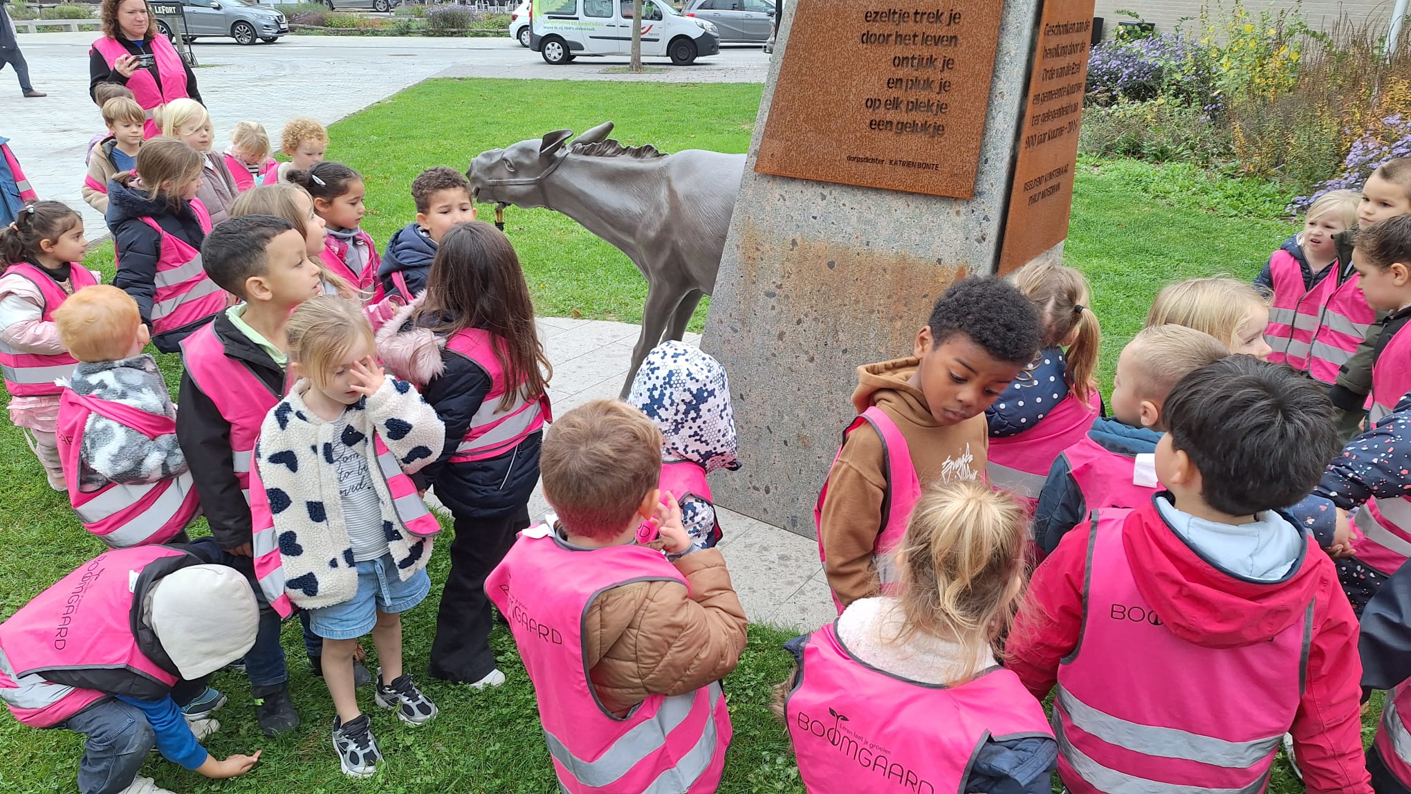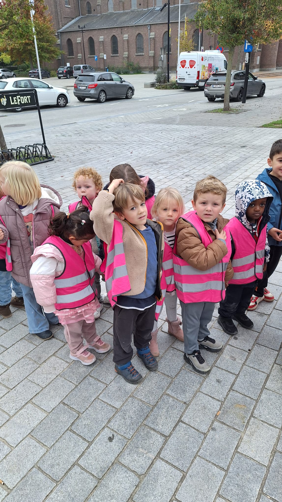 Op dinsdagvoormiddag gingen we op stap in onze gemeente. Want ook langs de straat zie je kunst! We hebben schilderwerken gezien op muren, op hout, op vensters. We konden ook enkele beelden waarnemen en die waren gemaakt uit verschillende materialen: hout of metaal. We leerden tijdens deze wandeling ook het verschil tussen kunstwerken en grote reclameborden die aan de muren hangen.