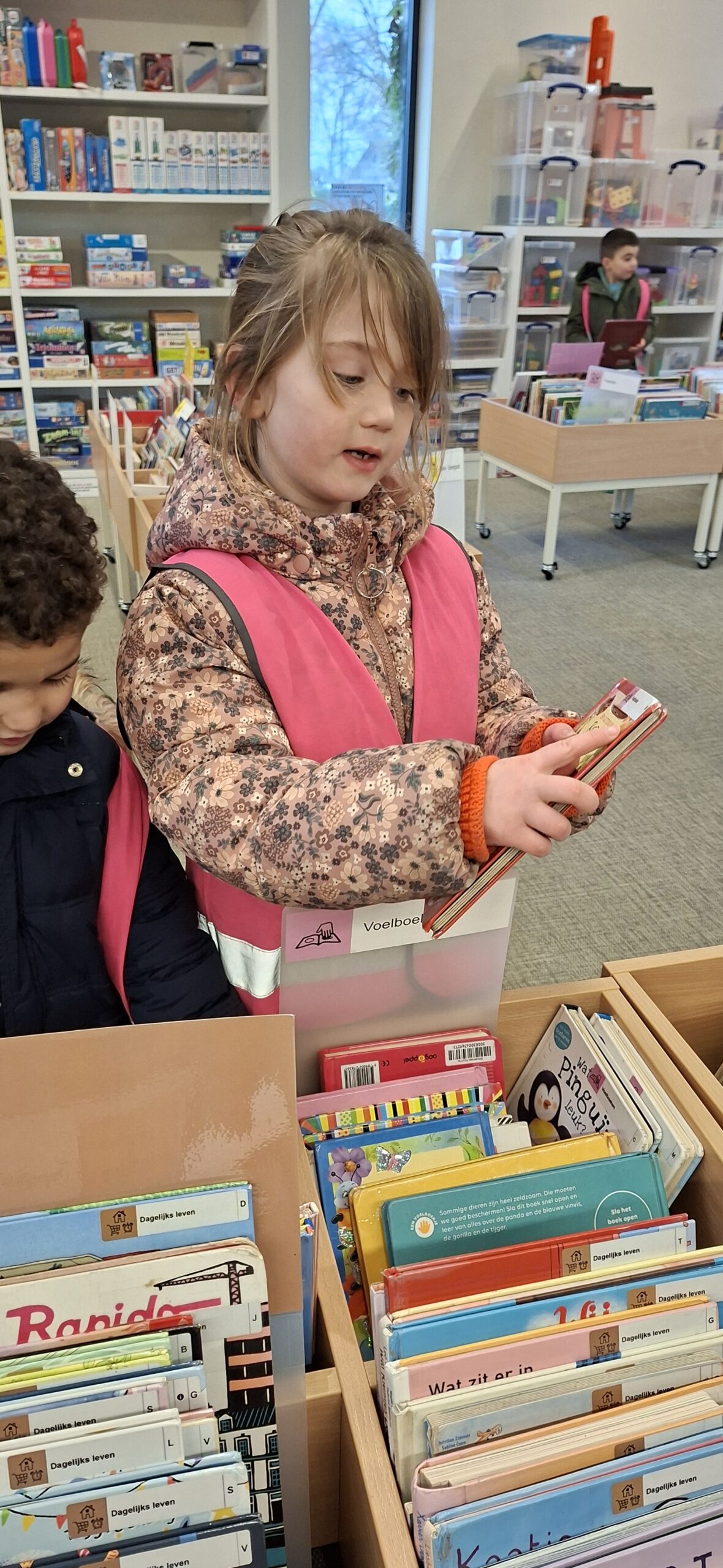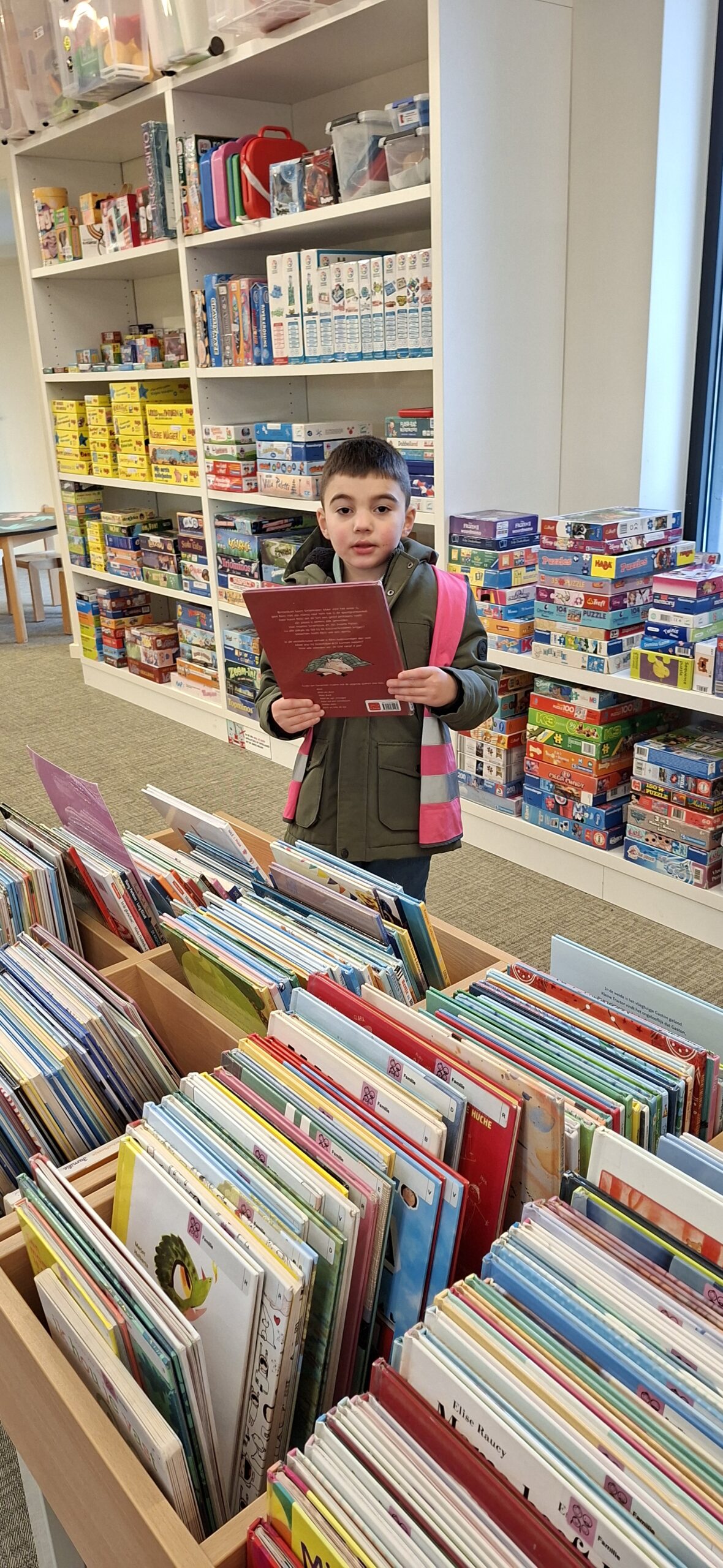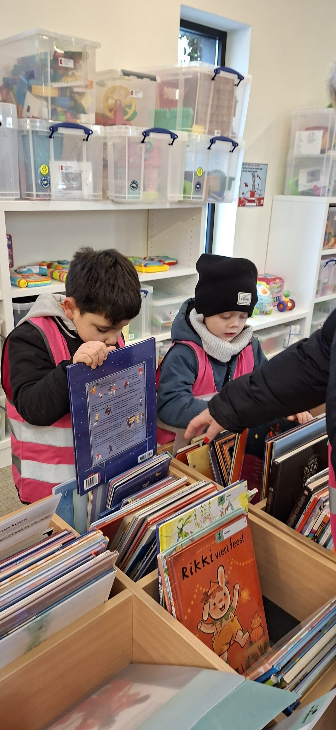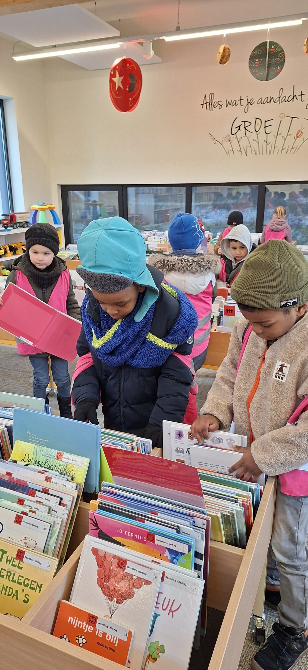 We gingen deze week ook opnieuw naar de bib in Kuurne. We namen onze vorige boekjes mee om in te ruilen voor een nieuw boekje. Deze boekjes komen opnieuw in onze boekenhoek terecht tot we opnieuw naar de bib gaan.
