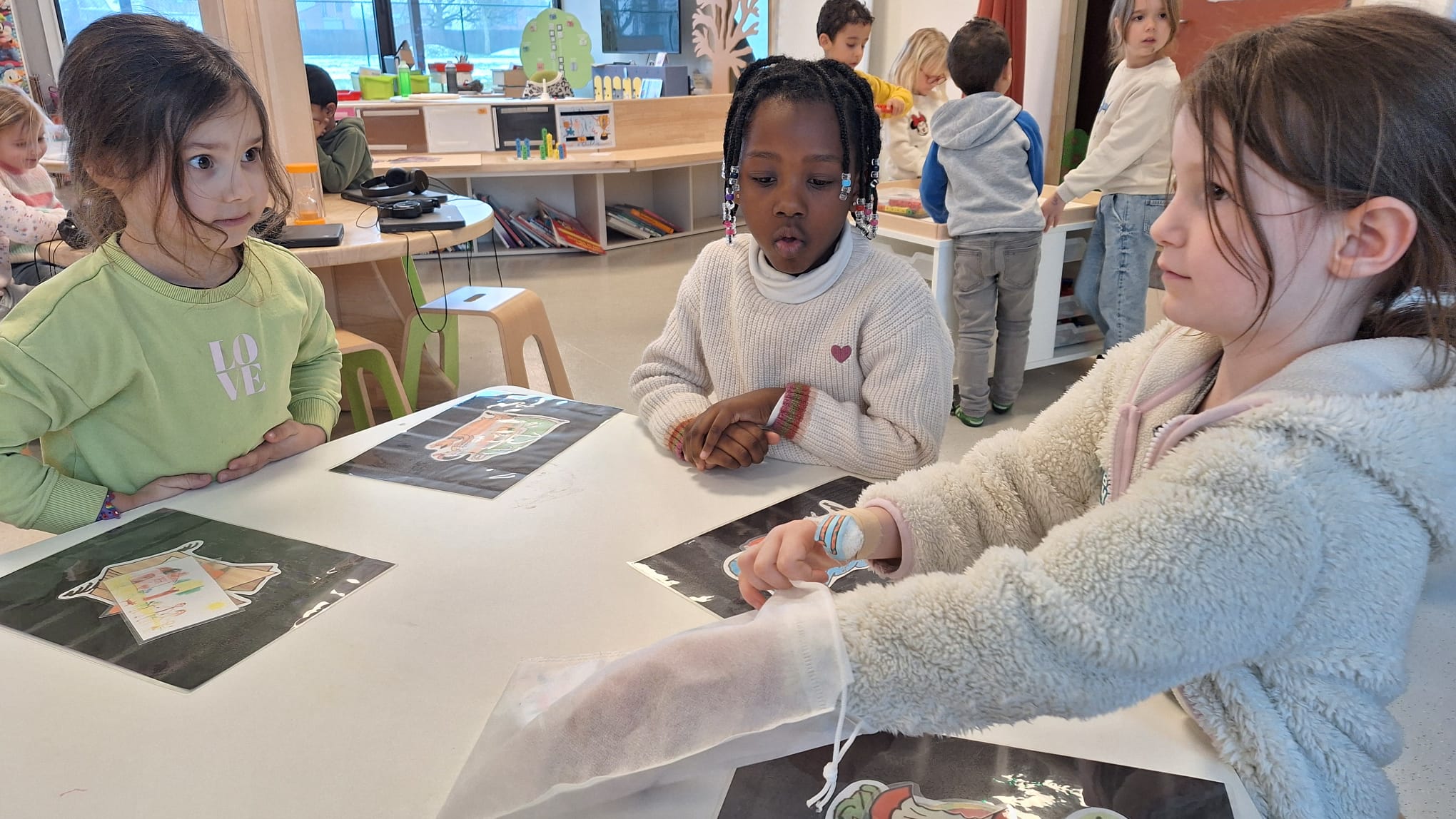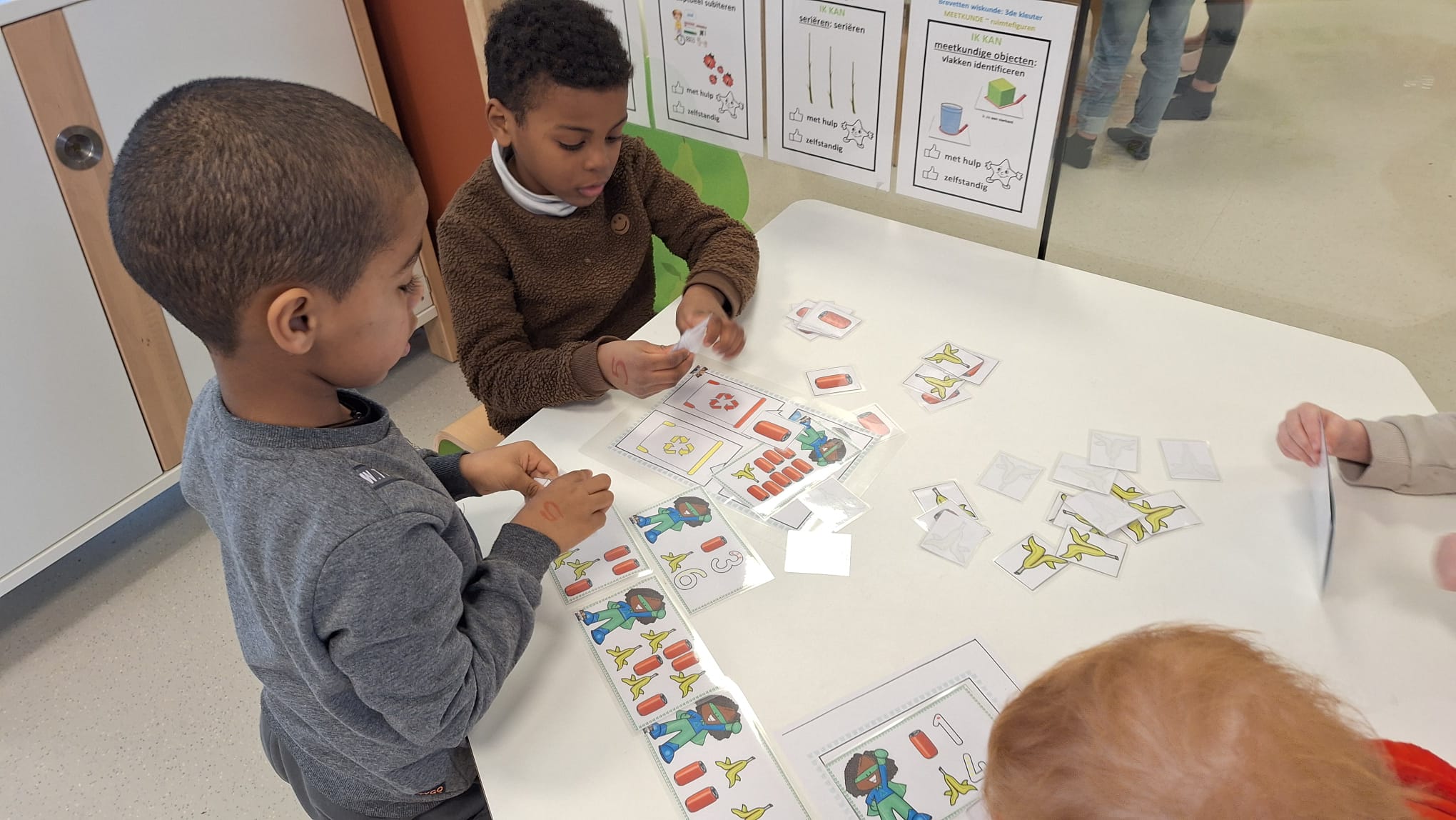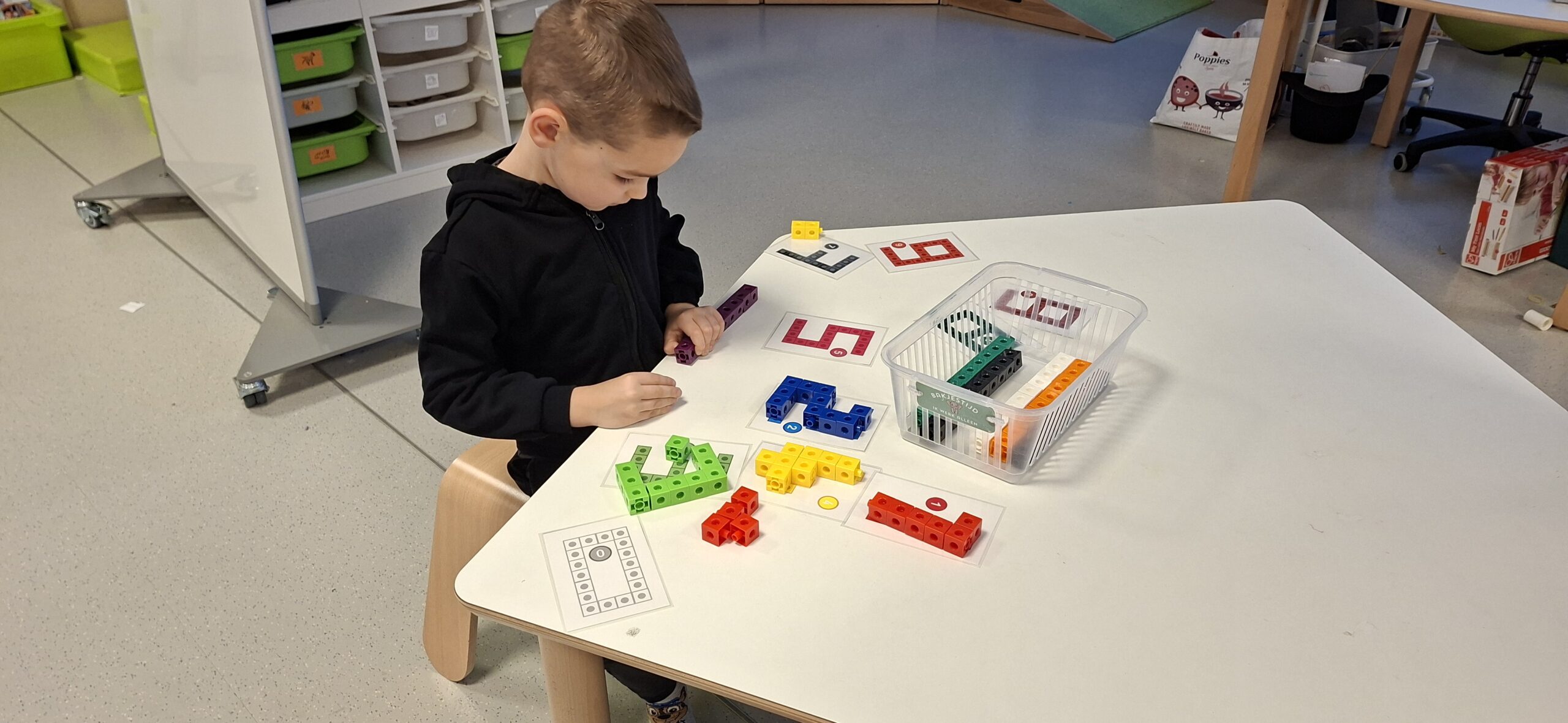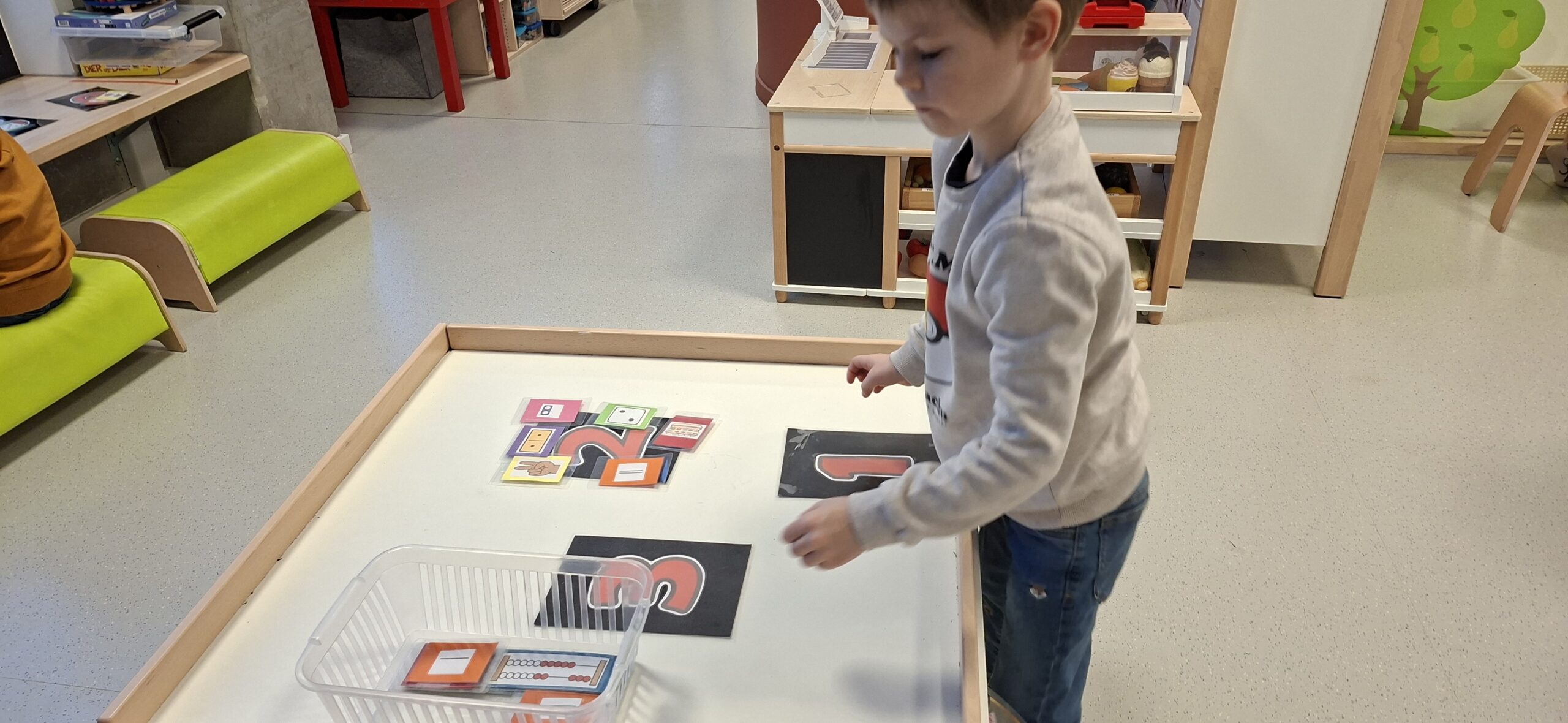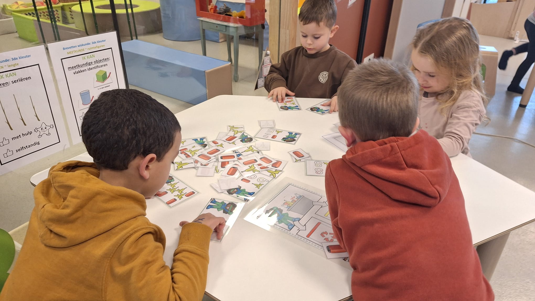 Tijdens hoekenwerk ontdekten we nieuwe materialen! De juf en de meester hadden de spullen in alle hoeken weer omgewisseld. De nieuwe spullen in de taal- en rekenhoek en enkele spelletjes van de denkhoek werden uitgelegd in de kring en daarna mochten we op ontdekkingstocht. We vinden het heerlijk om in alle hoeken nieuw materiaal te hebben om mee te experimenteren en te leren.