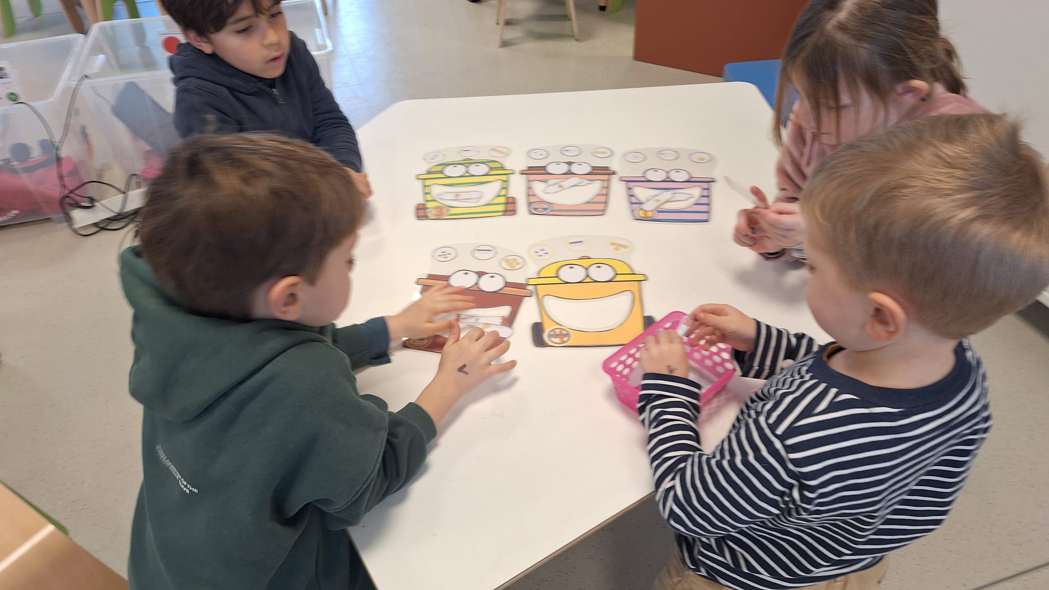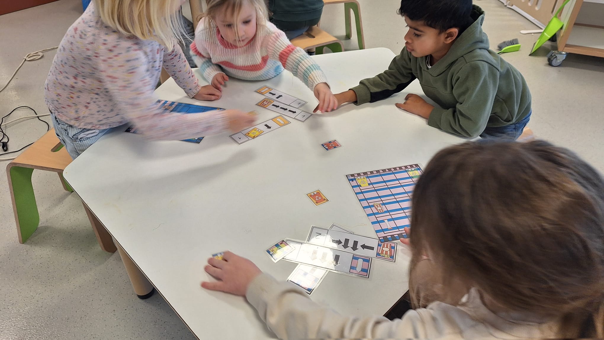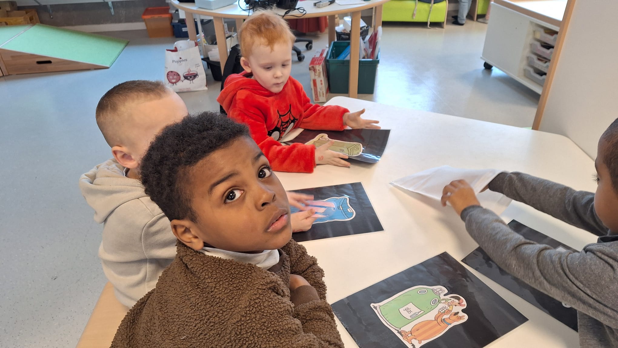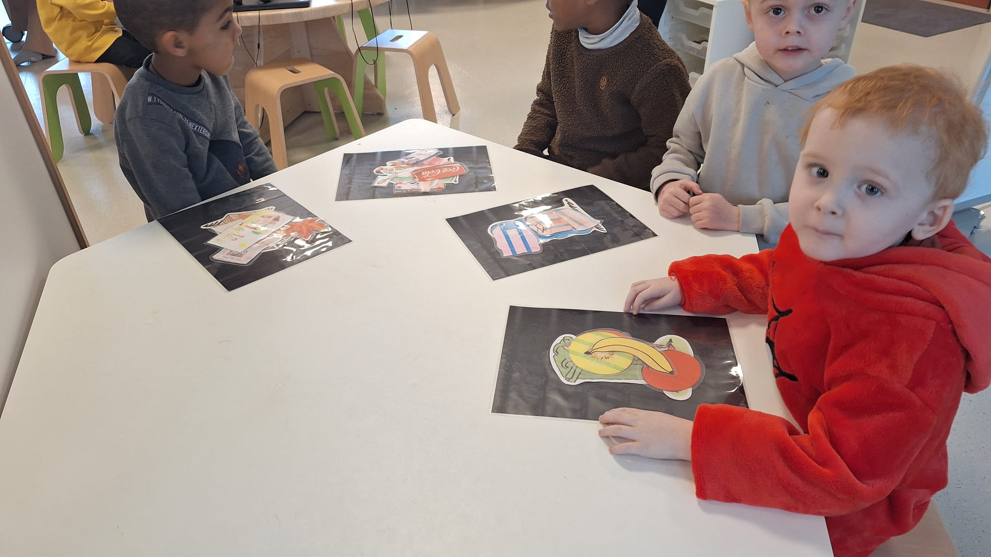 Tijdens hoekenwerk ontdekten we nieuwe materialen! De juf en de meester hadden de spullen in alle hoeken weer omgewisseld. De nieuwe spullen in de taal- en rekenhoek en enkele spelletjes van de denkhoek werden uitgelegd in de kring en daarna mochten we op ontdekkingstocht. We vinden het heerlijk om in alle hoeken nieuw materiaal te hebben om mee te experimenteren en te leren.