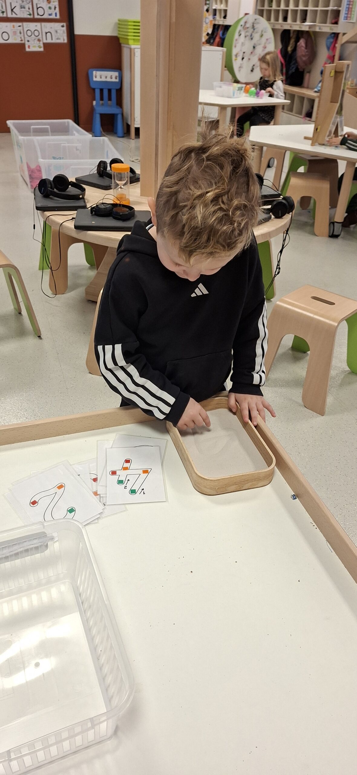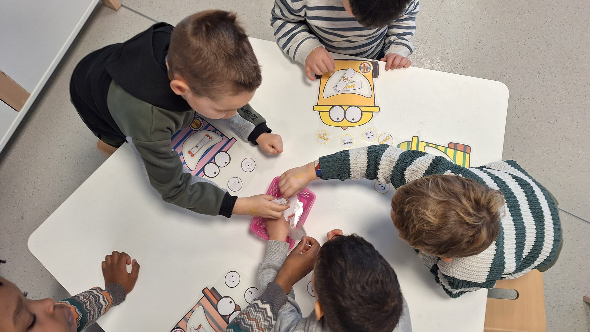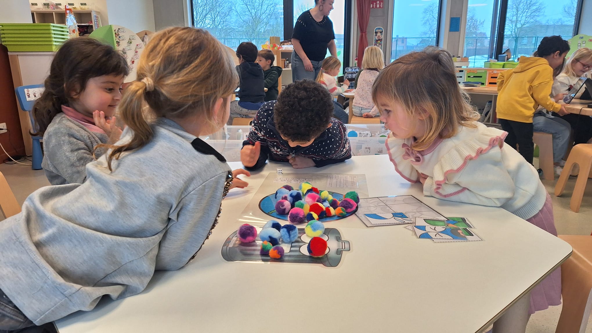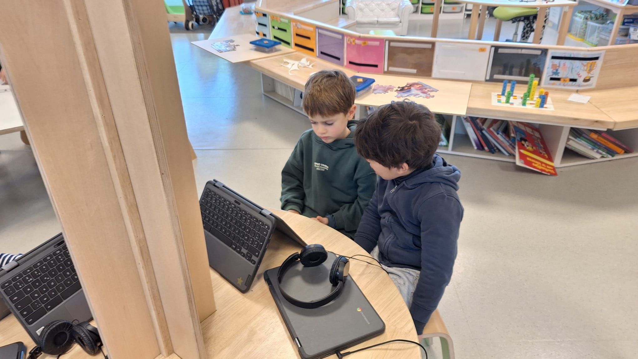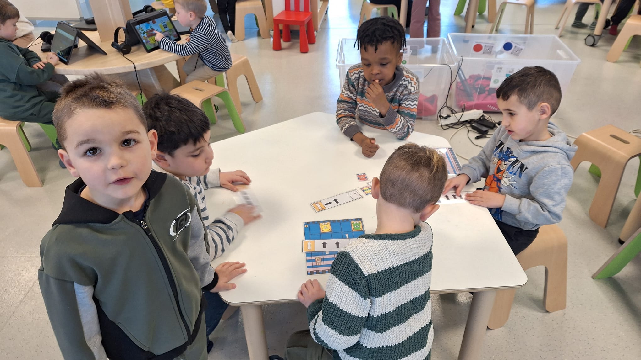 Tijdens hoekenwerk ontdekten we nieuwe materialen! De juf en de meester hadden de spullen in alle hoeken weer omgewisseld. De nieuwe spullen in de taal- en rekenhoek en enkele spelletjes van de denkhoek werden uitgelegd in de kring en daarna mochten we op ontdekkingstocht. We vinden het heerlijk om in alle hoeken nieuw materiaal te hebben om mee te experimenteren en te leren.