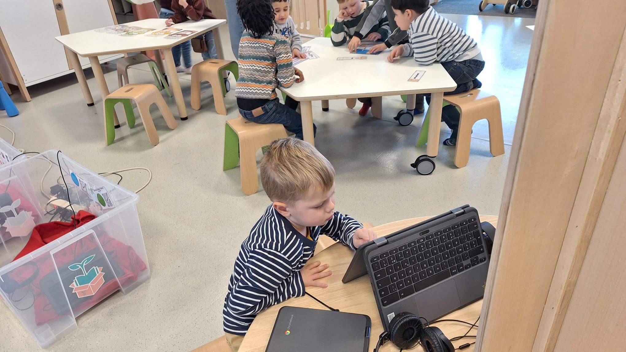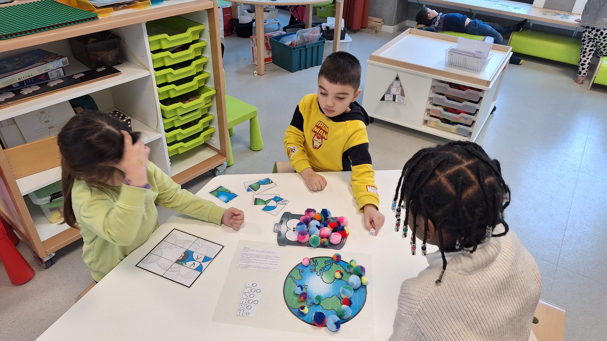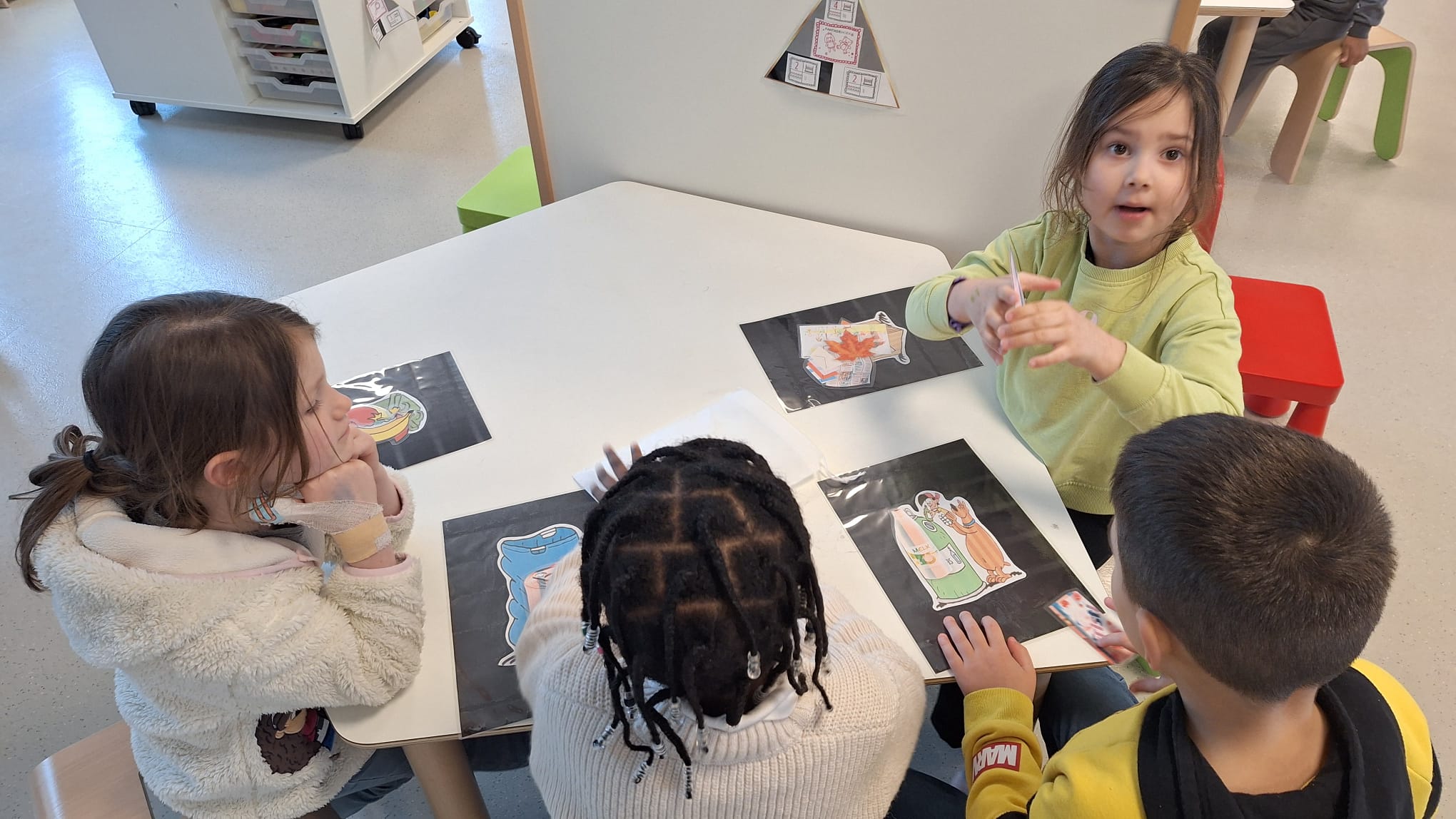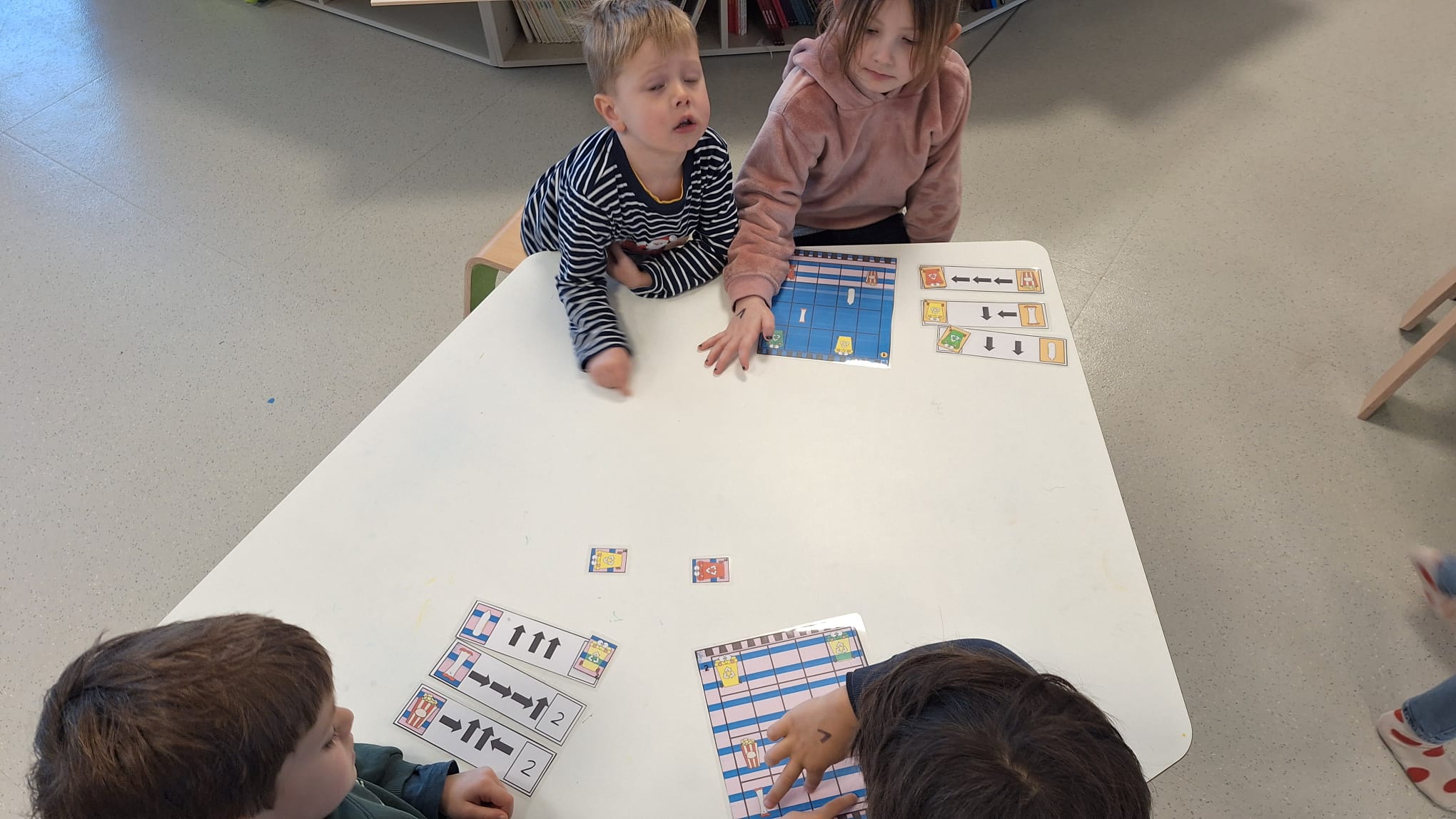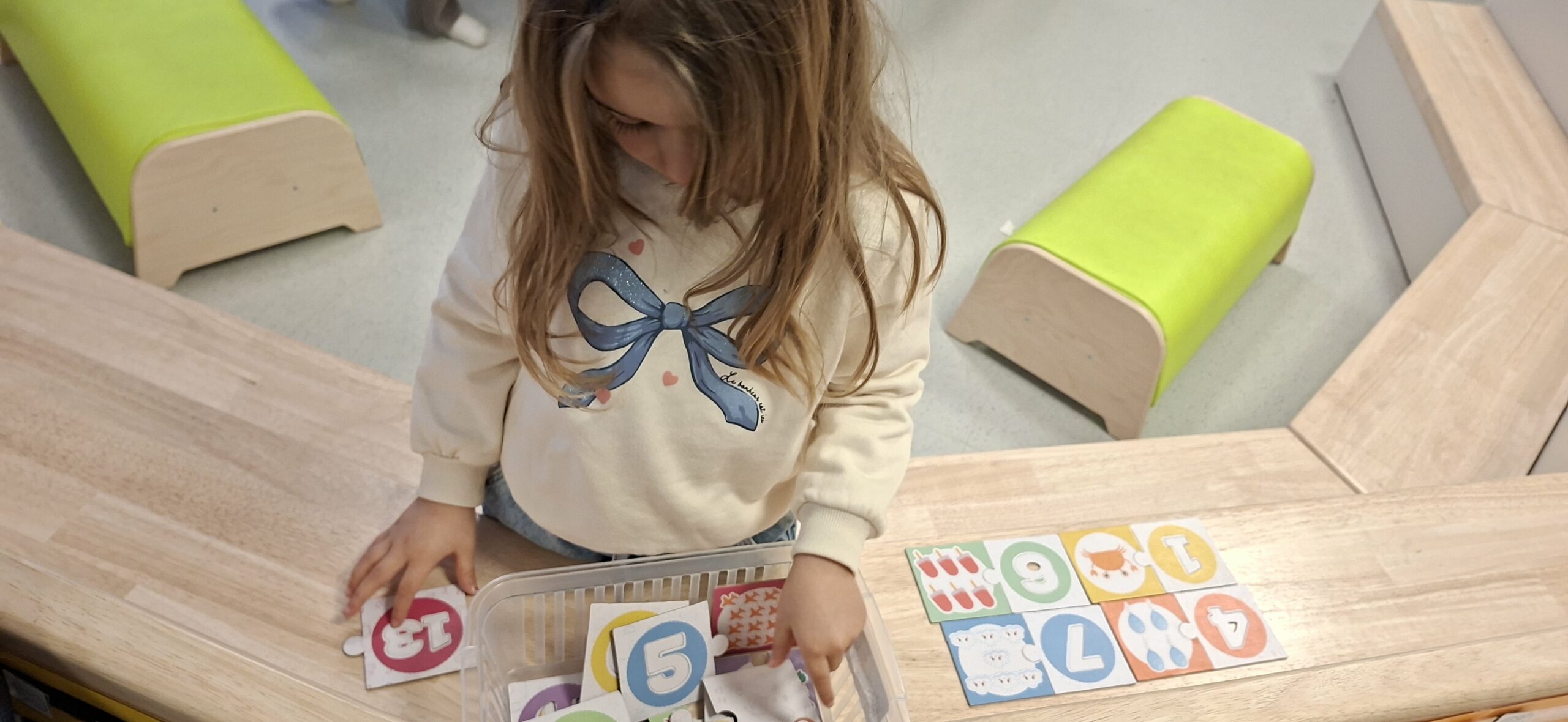 Tijdens hoekenwerk ontdekten we nieuwe materialen! De juf en de meester hadden de spullen in alle hoeken weer omgewisseld. De nieuwe spullen in de taal- en rekenhoek en enkele spelletjes van de denkhoek werden uitgelegd in de kring en daarna mochten we op ontdekkingstocht. We vinden het heerlijk om in alle hoeken nieuw materiaal te hebben om mee te experimenteren en te leren.