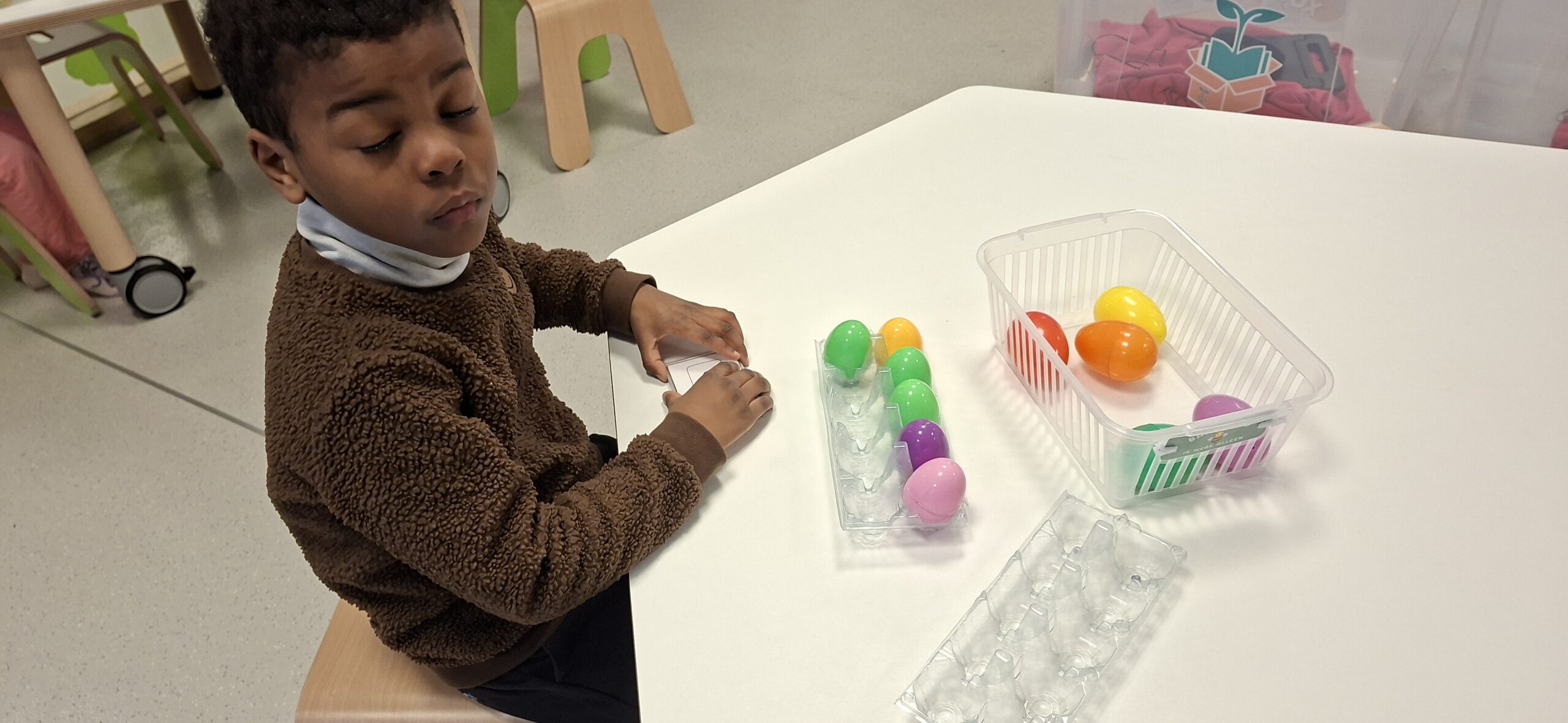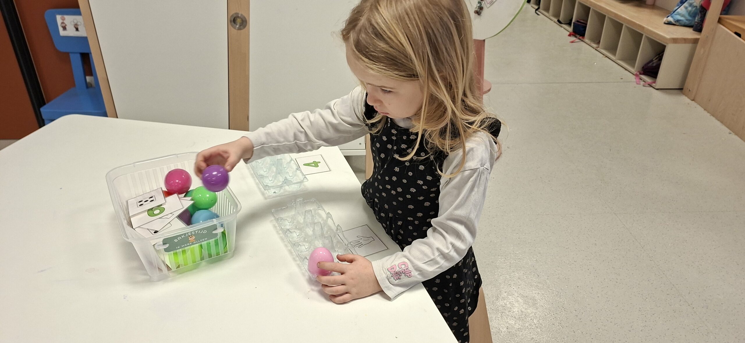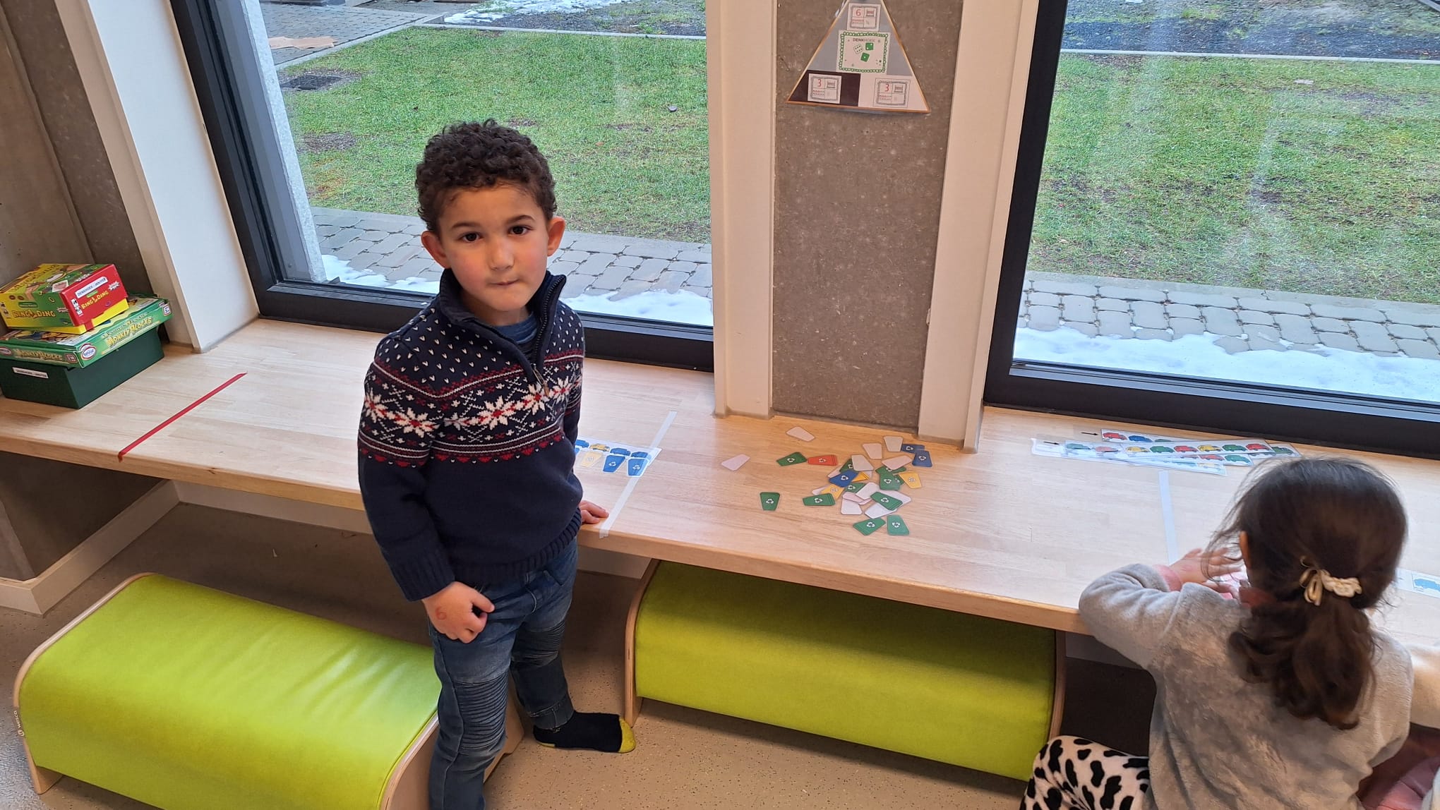 Woensdag kregen we ook iets nieuws: bakjestijd! Hier krijgen de kleuters elk een apart bakje met daarin spullen rond taal of rekenen. Ze moeten individueel aan de slag met het materiaal. De juf legt uit aan wie extra uitleg nodig heeft en kijkt na of het taakje correct gedaan is. De kleuters leren hier ook zelfstandig en geconcentreerd werken. Ook leren ze hun beurt rustig afwachten, want de juf kan niet bij iedereen tegelijk helpen of controleren. Daarnaast hadden we ook een dag waarop we stilstonden bij het belang van afval sorteren. We kwamen te weten wat sorteren is en wat het belang van sorteren is. Daarna gingen we tijdens hoekenwerk aan de slag met allerlei spelletjes met en over afval.
