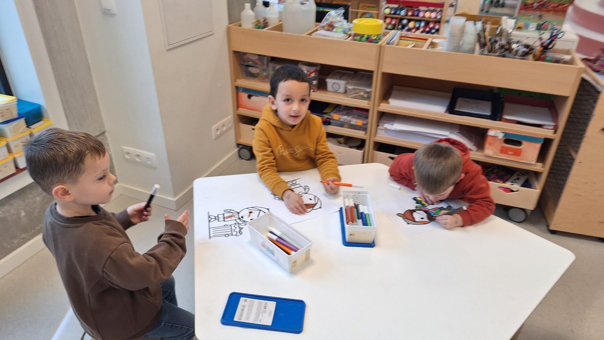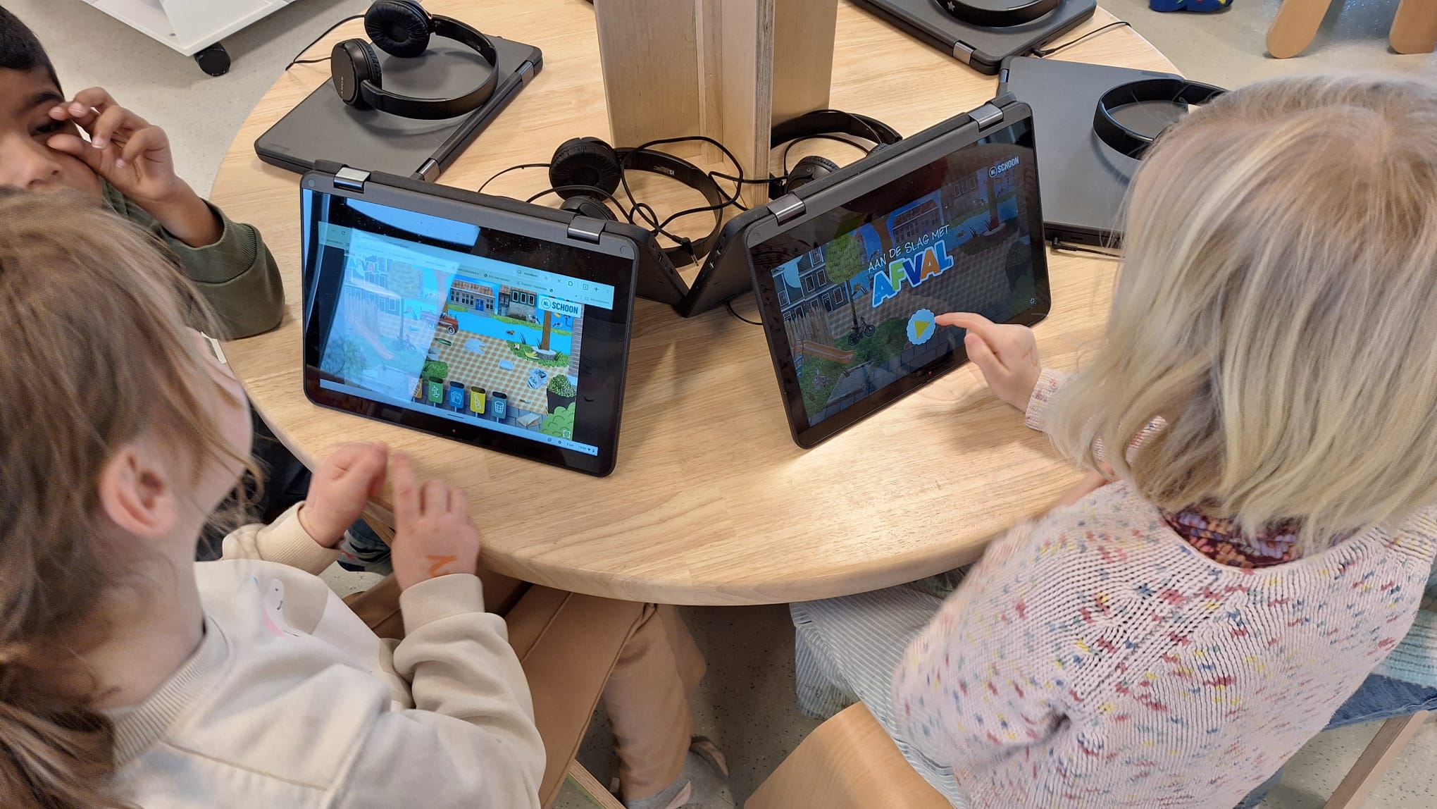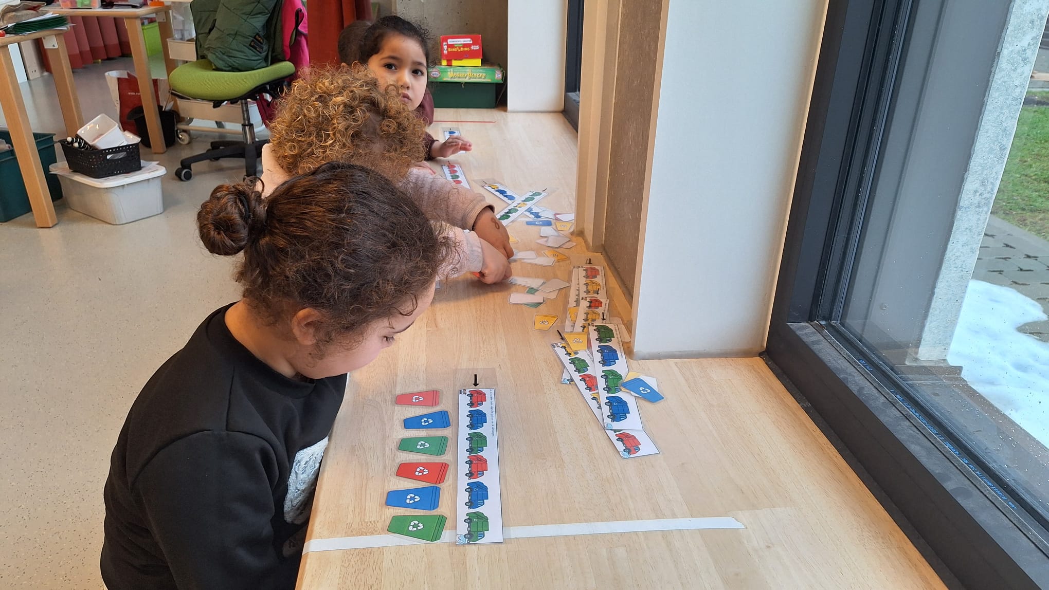 Woensdag kregen we ook iets nieuws: bakjestijd! Hier krijgen de kleuters elk een apart bakje met daarin spullen rond taal of rekenen. Ze moeten individueel aan de slag met het materiaal. De juf legt uit aan wie extra uitleg nodig heeft en kijkt na of het taakje correct gedaan is. De kleuters leren hier ook zelfstandig en geconcentreerd werken. Ook leren ze hun beurt rustig afwachten, want de juf kan niet bij iedereen tegelijk helpen of controleren. Daarnaast hadden we ook een dag waarop we stilstonden bij het belang van afval sorteren. We kwamen te weten wat sorteren is en wat het belang van sorteren is. Daarna gingen we tijdens hoekenwerk aan de slag met allerlei spelletjes met en over afval.