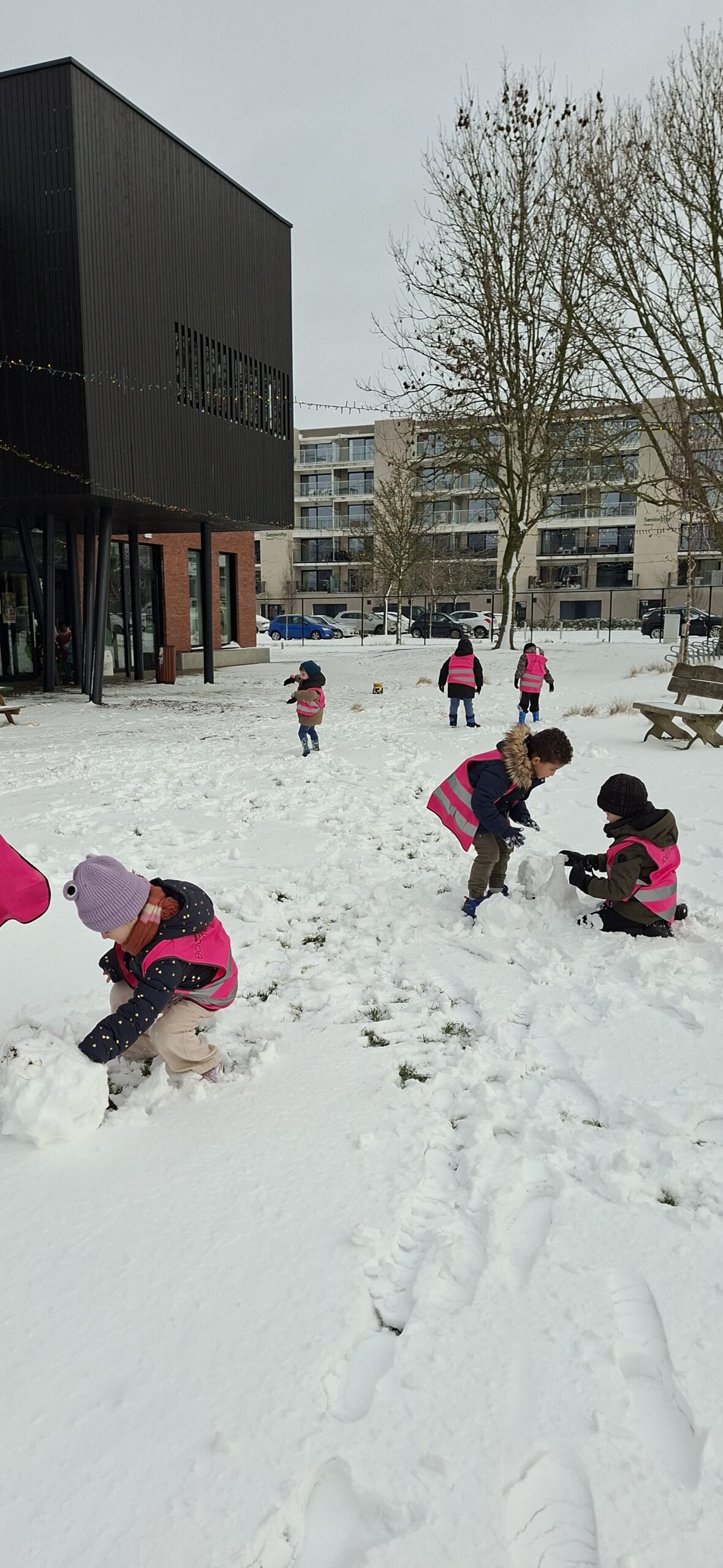GENIET van de vele foto’s hierover: sneeuwpret, bakjestijd, bezoek aan de bib en de afvaldag.