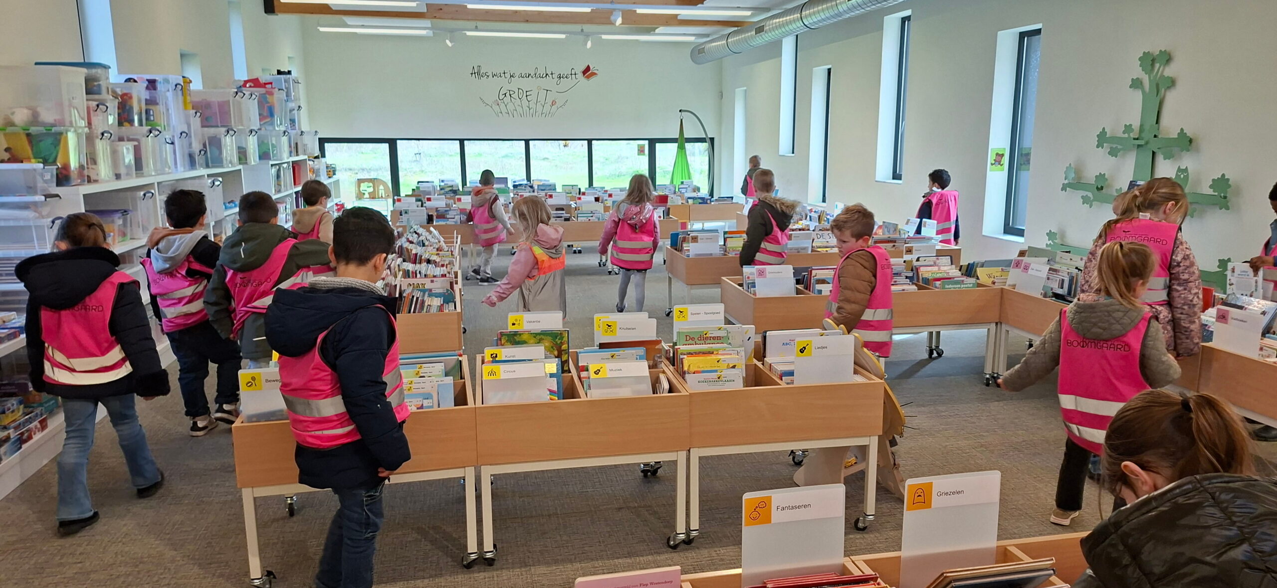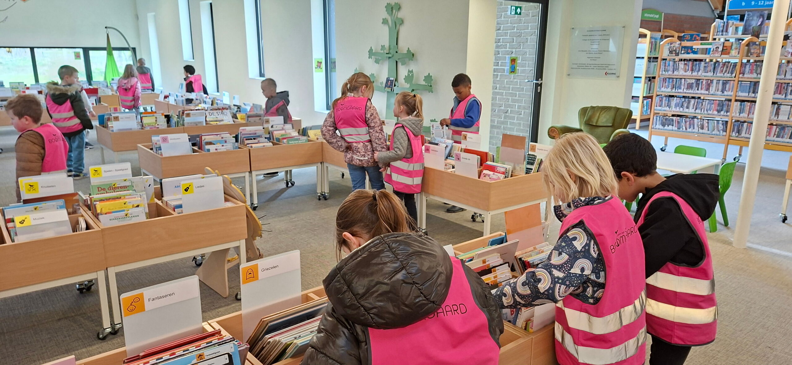 Op maandagnamiddag gingen we ook nog naar de bib. We brachten onze boeken terug en mochten opnieuw nieuwe kiezen voor in onze boekenhoek. En op donderdag hadden we opnieuw een letterdag. We werkten deze keer rond de E en de EE.