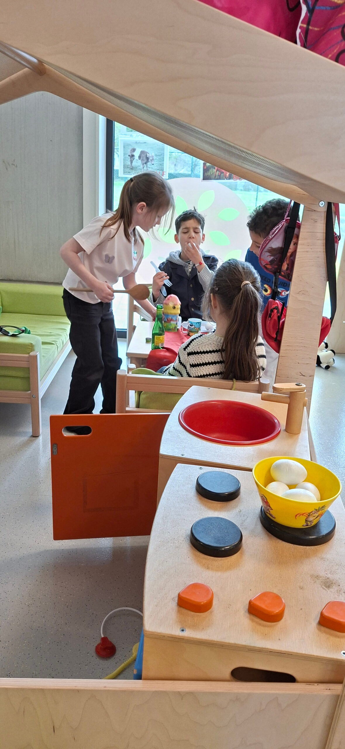 🧺In de knutselhoek maakten we onze paasmandjes af. Het knippen van de kippen vonden de kleuters wel wat moeilijk en lastig, want het waren 2 grote kippen. Daarnaast konden we ook nog iets tekenen en kleuren over de boerderij, een boerderijdier schilderen of met lijm en papier een wormpje of een paashaasje maken.